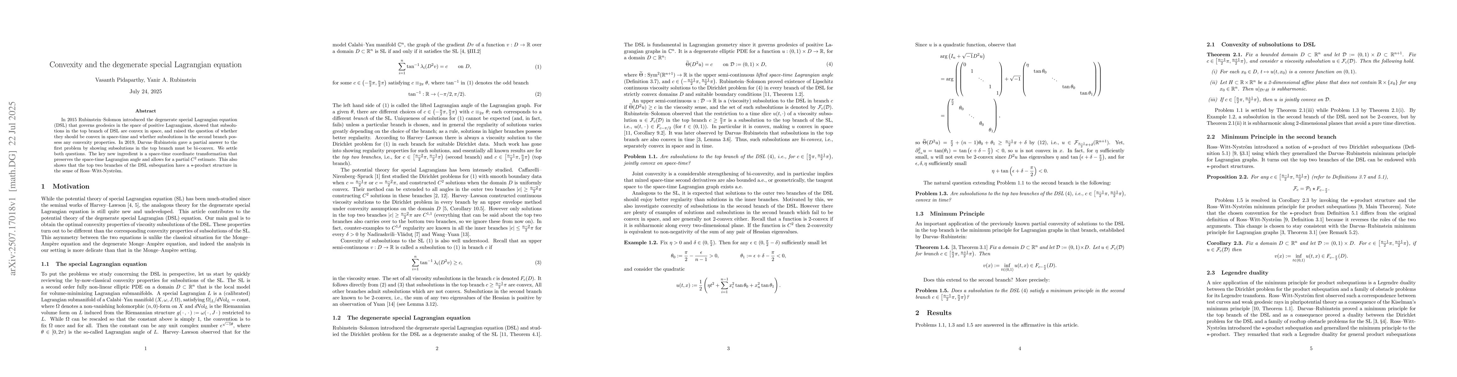 In 2015 Rubinstein--Solomon introduced the degenerate special Lagrangian equation (DSL) that governs geodesics in the space of positive Lagrangians, showed that subsolutions in the top branch of DSL are convex in space, and raised the question of whether they should be convex in space-time and whether subsolutions in the second branch possess any convexity properties. In 2019, Darvas--Rubinstein gave a partial answer to the first problem by showing subsolutions in the top branch must be bi-convex. We settle both questions. The key new ingredient is a space-time coordinate transformation that preserves the space-time Lagrangian angle and allows for a partial $C^2$ estimate. This also shows that the top two branches of the DSL subequation have a $\star$-product structure in the sense of Ross--Witt-Nystr\"om.