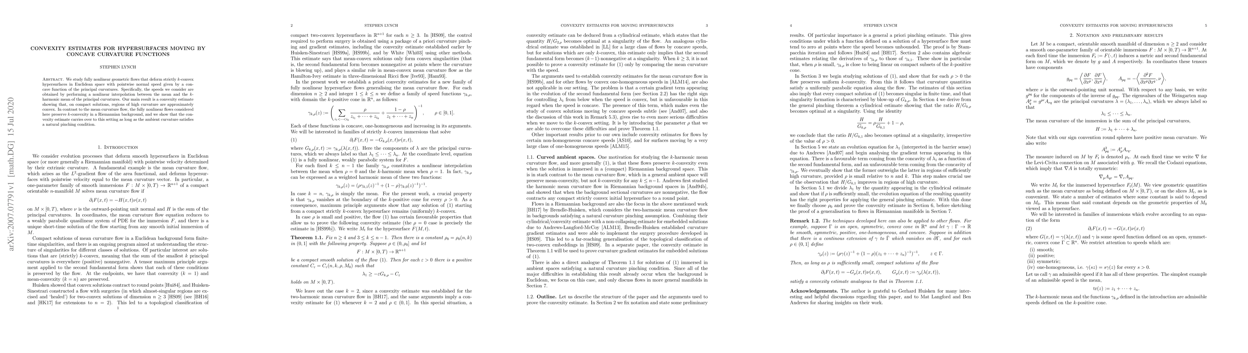 Researchers developed a convexity estimate for hypersurfaces moving in Euclidean space with concave curvature functions, showing regions of high curvature are approximately convex on compact solutions.