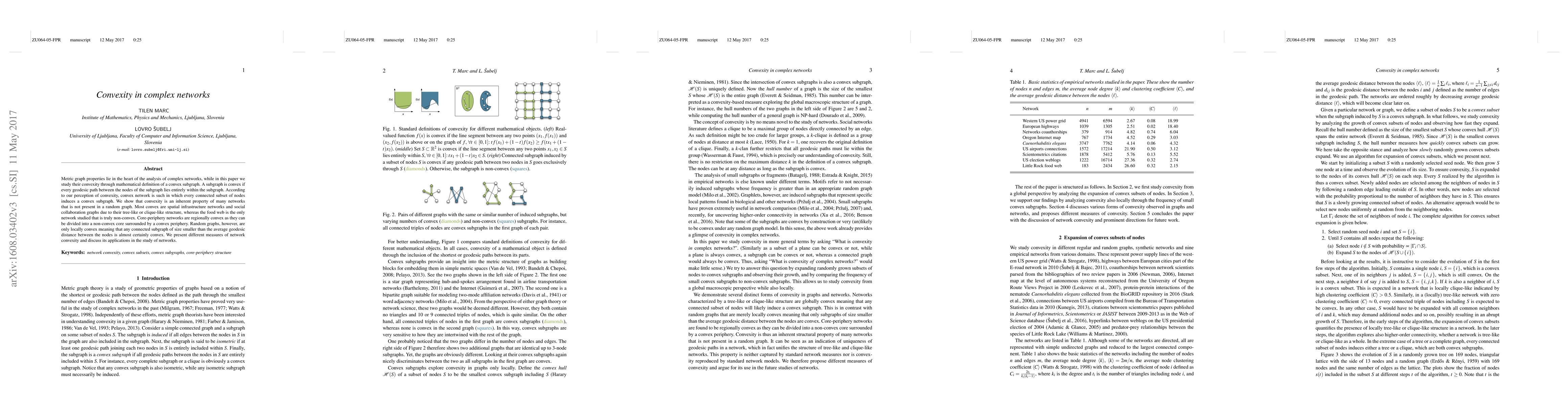 This paper explores the concept of convexity in complex networks, defining a convex subgraph as one where every geodesic path between nodes lies entirely within the subgraph. It finds that convexity is a common feature in many real-world networks, especially spatial and social ones, while random graphs exhibit only local convexity.