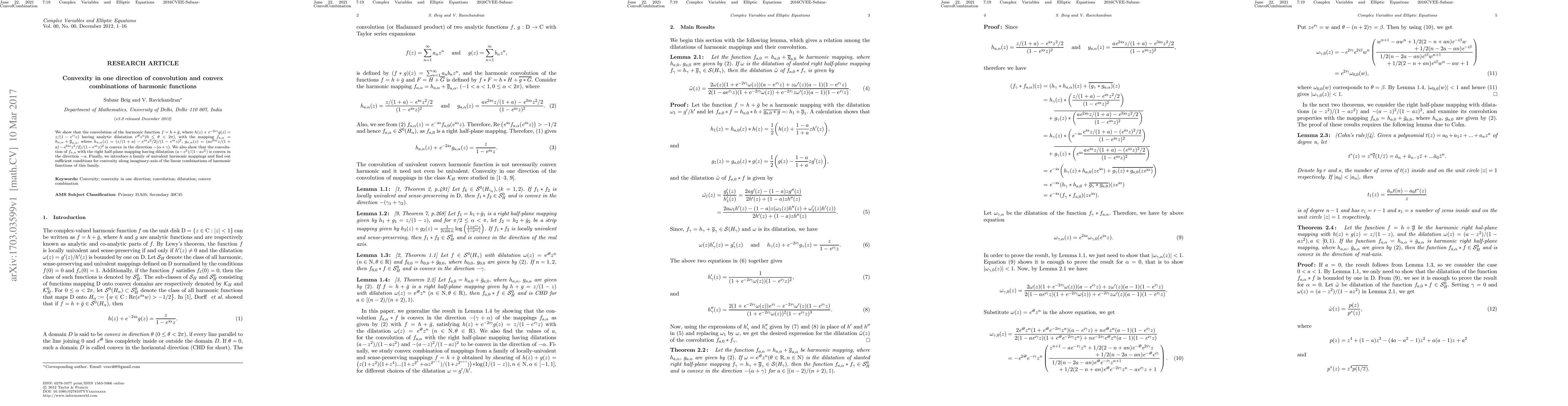 This paper demonstrates the convexity in one direction of convolutions involving harmonic functions, specifically showing that certain convolutions of specific harmonic mappings are convex in specified directions. It also explores sufficient conditions for the convexity of linear combinations of harmonic functions within a newly introduced family of univalent harmonic mappings.