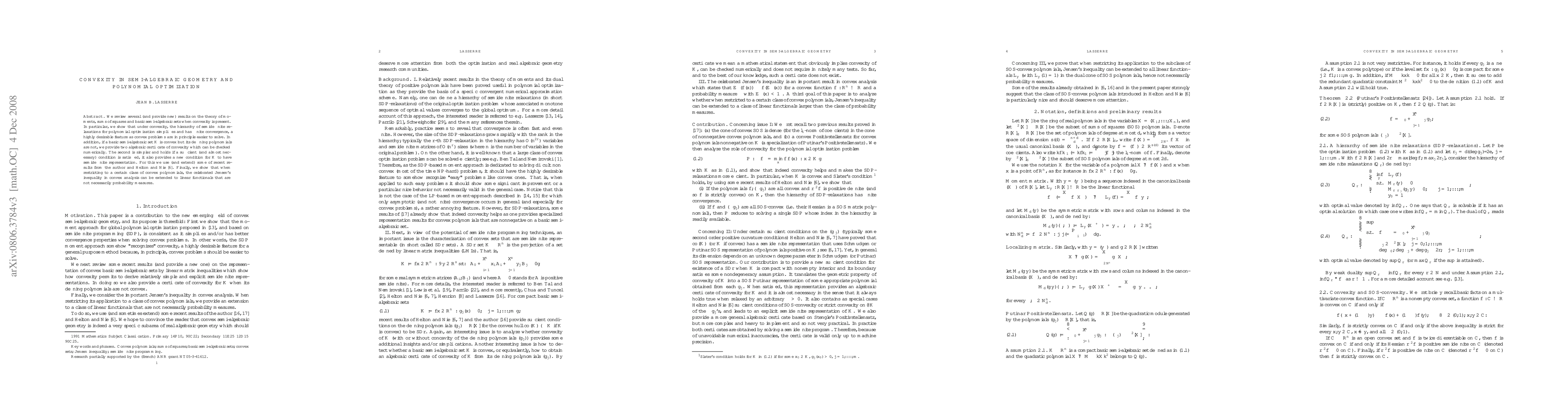This paper explores the simplification of semidefinite relaxations in polynomial optimization under convexity, demonstrating finite convergence and providing a numerical certificate for convexity of basic semi-algebraic sets. It also extends Jensen's inequality to linear functionals beyond probability measures for a specific class of convex polynomials.