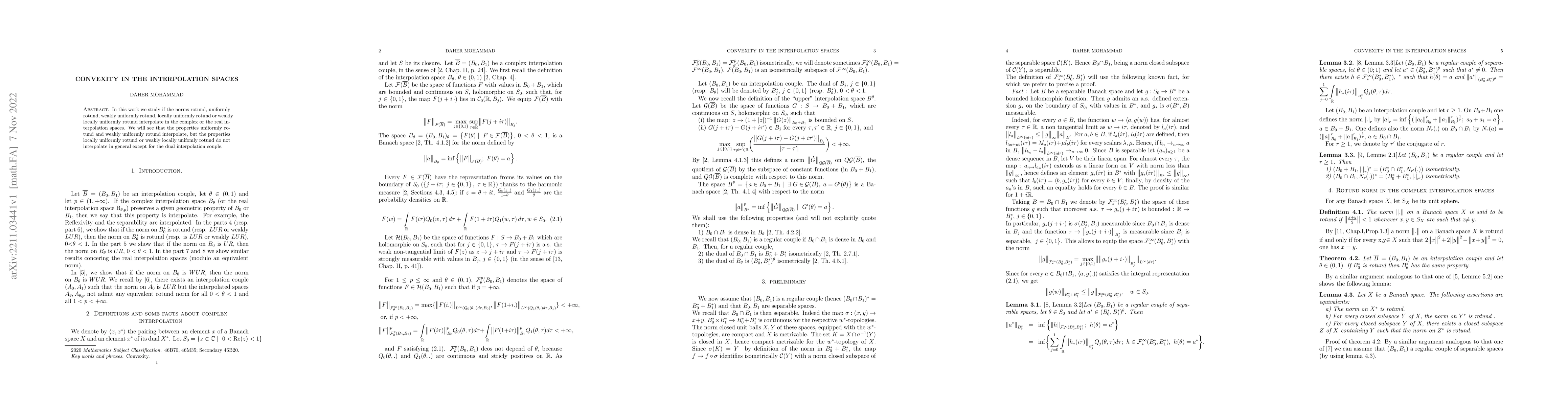 In this work we study if the norms rotund, uniformly rotund, weakly uniformly rotund, locally uniformly rotund or weakly locally uniformly rotund interpolate in the complex or the real interpolation spaces. We will see that the properties uniformly rotund and weakly uniformly rotund interpolate, but the properties locally uniformly rotund or weakly locally uniformly rotund do not interpolate in general except for the dual interpolation couple.