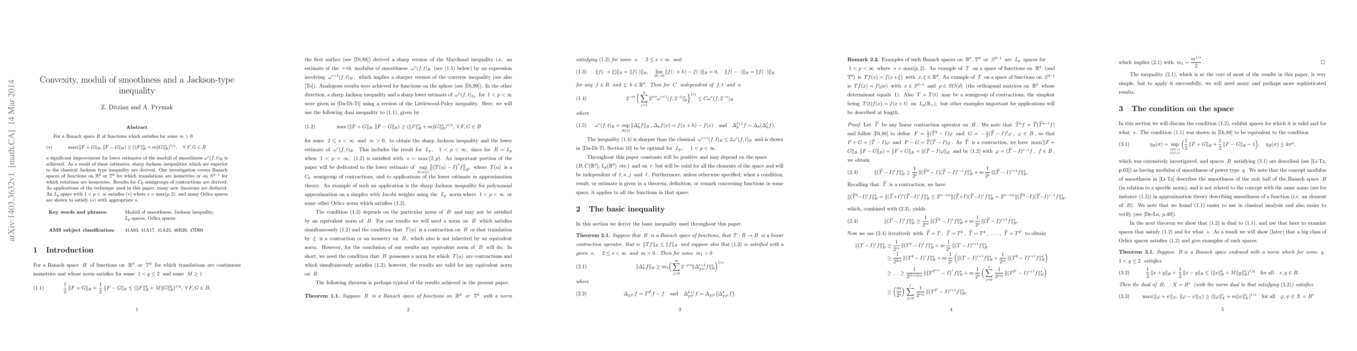 For a Banach space $B$ of functions which satisfies for some $m>0$ $$ \max(\|F+G\|_B,\|F-G\|_B) \ge (\|F\|^s_B + m\|G\|^s_B)^{1/s}, \forall F,G\in B \ (*) $$ a significant improvement for lower estimates of the moduli of smoothness $\omega^r(f,t)_B$ is achieved. As a result of these estimates, sharp Jackson inequalities which are superior to the classical Jackson type inequality are derived. Our investigation covers Banach spaces of functions on $R^d$ or $T^d$ for which translations are isometries or on $S^{d-1}$ for which rotations are isometries. Results for $C_0$ semigroups of contractions are derived. As applications of the technique used in this paper, many new theorems are deduced. An $L_p$ space with $1