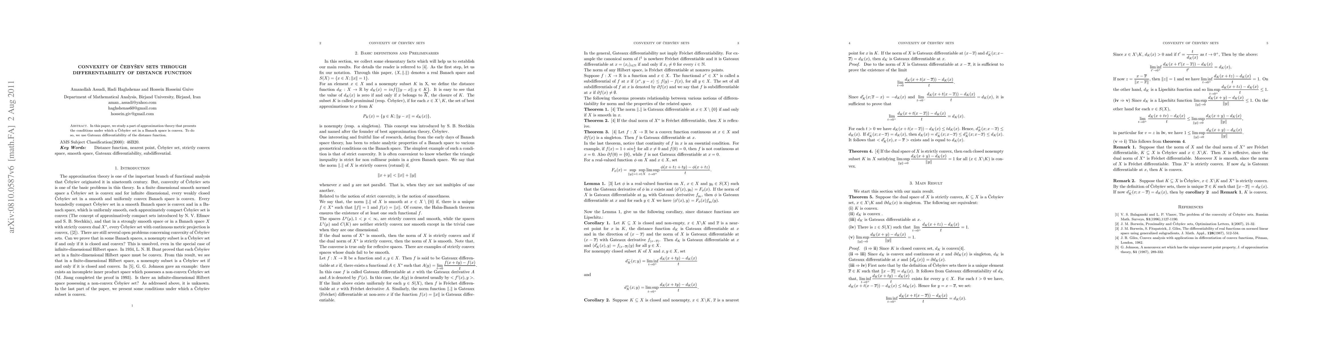 In this paper, we study a part of approximation theory that presents the conditions under which a \Ceby\sev set in a Banach space is convex. To do so, we use Gateaux differentiability of the distance function.