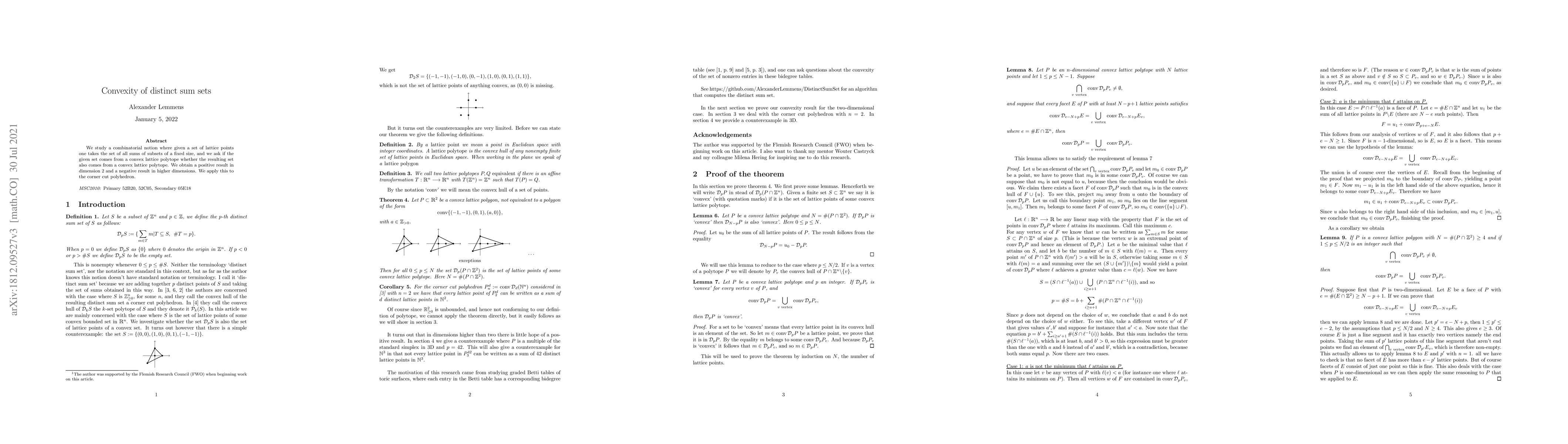 We study a combinatorial notion where given a set of lattice points one takes the set of all sums of subsets of a fixed size, and we ask if the given set comes from a convex lattice polytope whether the resulting set also comes from a convex lattice polytope. We obtain a positive result in dimension 2 and a negative result in higher dimensions. We apply this to the corner cut polyhedron.