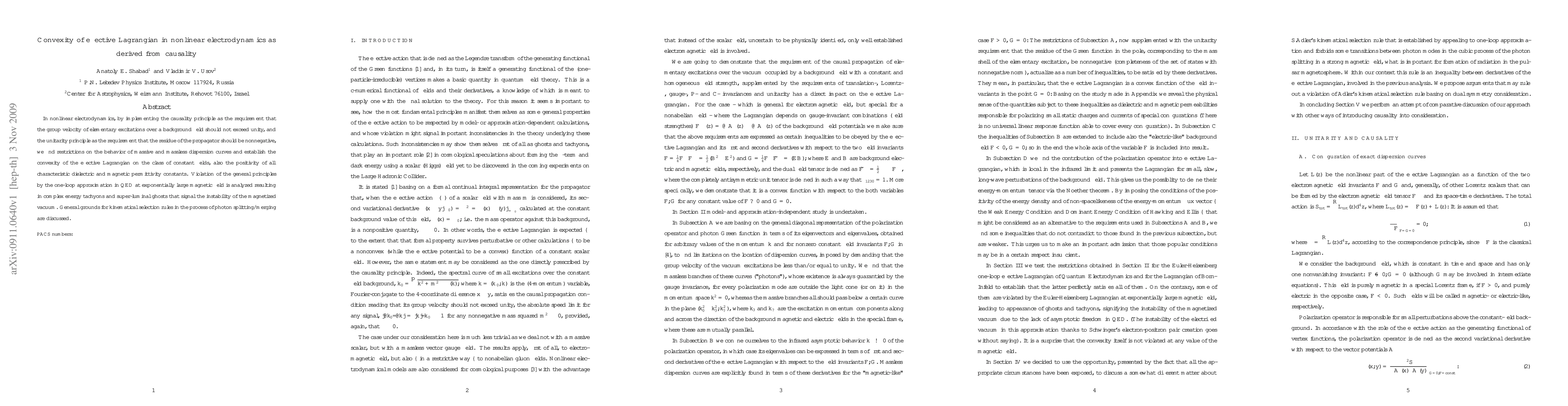 This research paper explores the convexity of the effective Lagrangian in nonlinear electrodynamics, establishing restrictions on dispersion curves and dielectric/magnetic constants. It also discusses instability in magnetized vacuums at exponentially large magnetic fields.