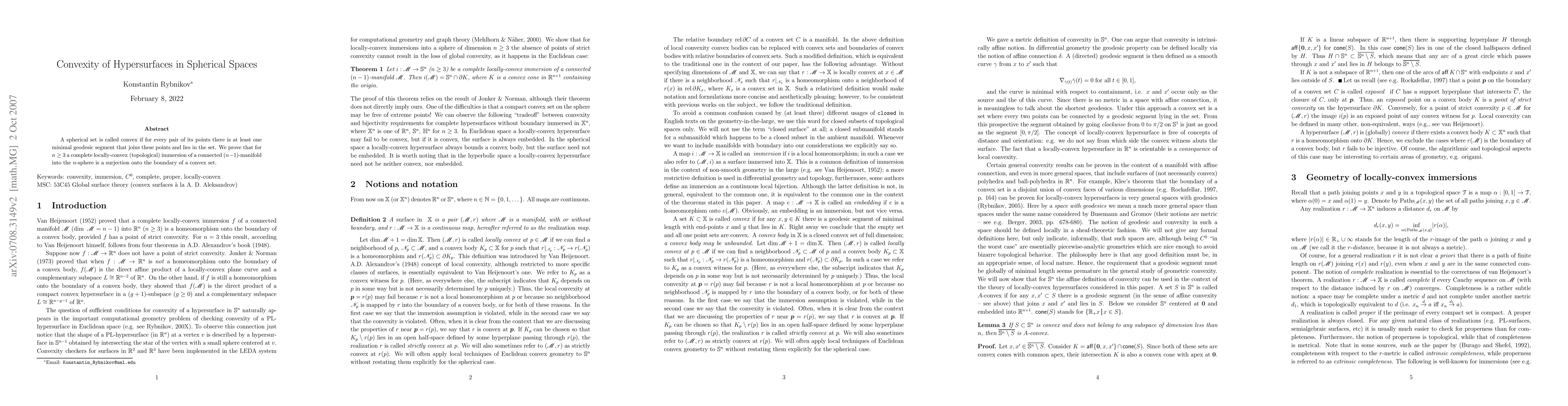 A spherical set is called convex if for every pair of its points there is at least one minimal geodesic segment that joins these points and lies in the set. We prove that for n >= 3 a complete locally-convex (topological) immersion of a connected (n-1)-manifold into the n-sphere is a surjection onto the boundary of a convex set.