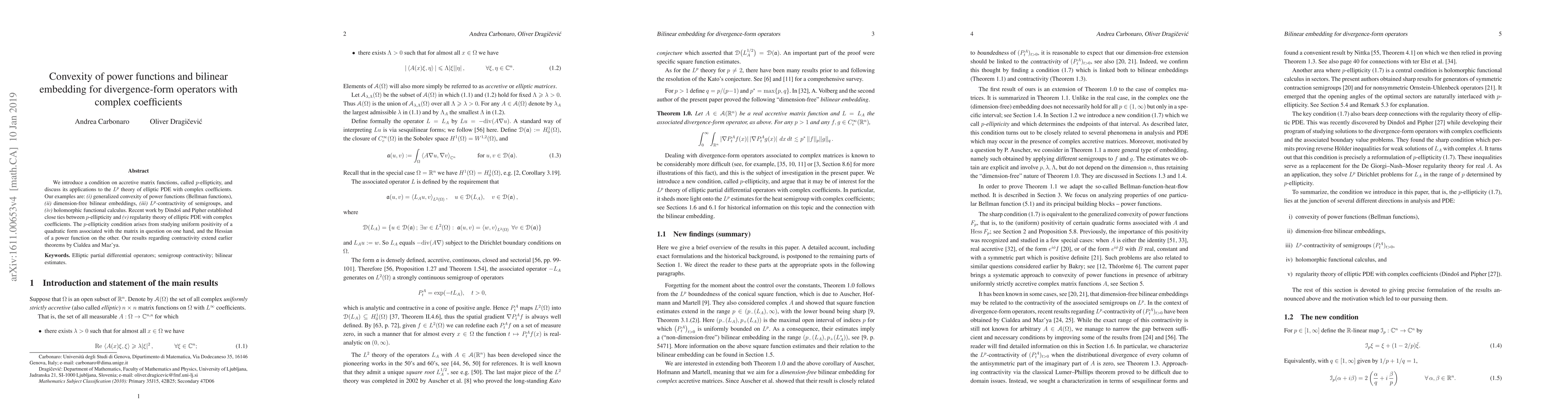 Researchers introduce a condition called $p$-ellipticity, which ties to power functions, bilinear embeddings, and properties of elliptic PDE with complex coefficients, extending earlier theorems on contractivity.