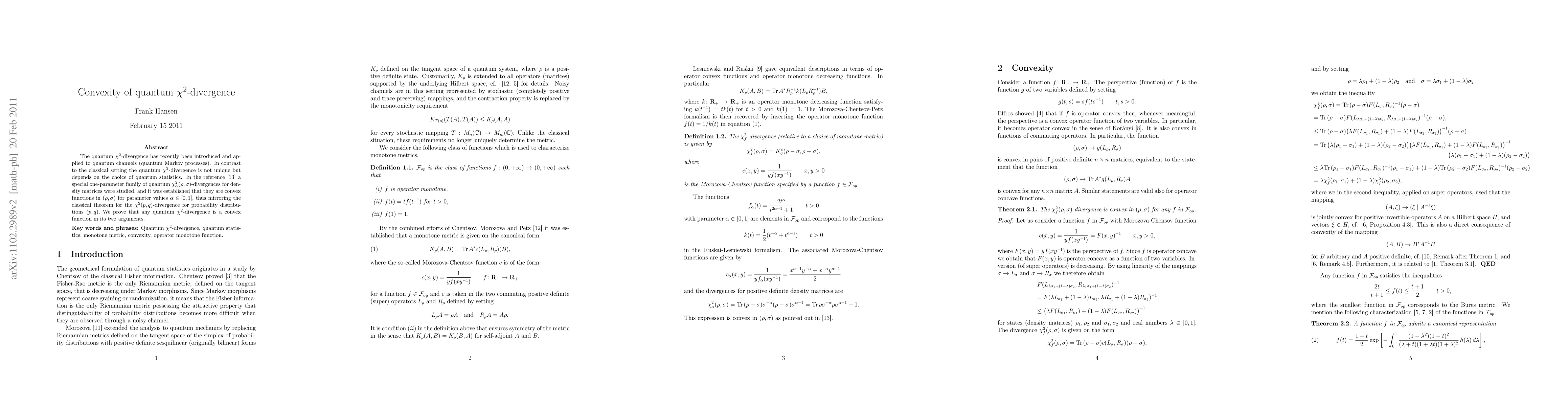 The paper investigates the convexity properties of quantum $\chi^2$-divergences, proving that any such divergence function is convex in its density matrix arguments, extending classical results for $\chi^2$-divergences of probability distributions.