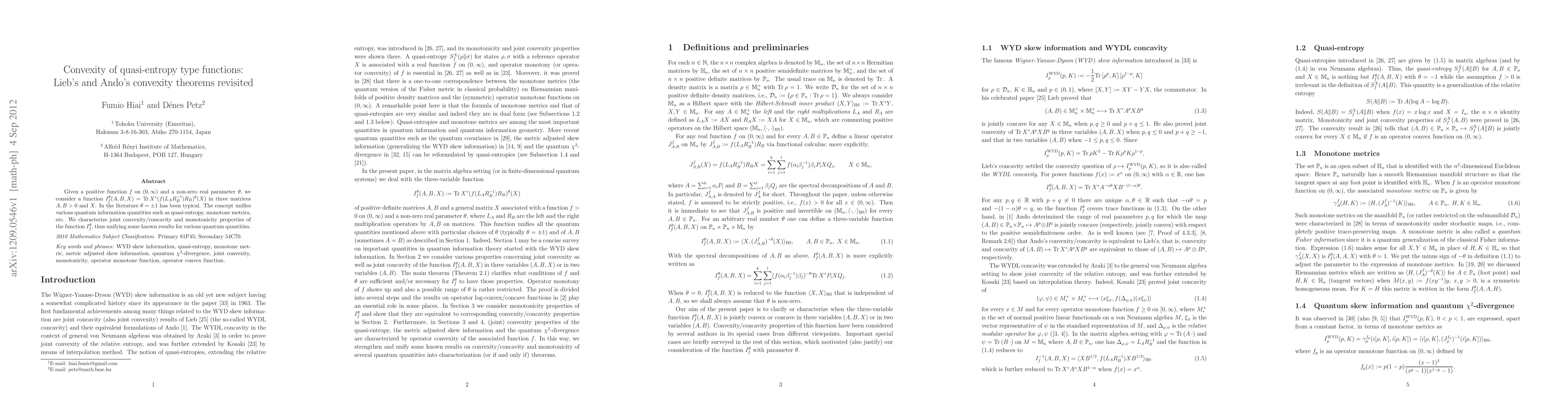 This paper explores the convexity and concavity properties of a quasi-entropy type function $I_f^\theta$ involving three positive matrices $A$, $B$, and $X$, and a parameter $\theta$. It unifies and extends known results from Lieb's and Ando's theorems for quantum information quantities.