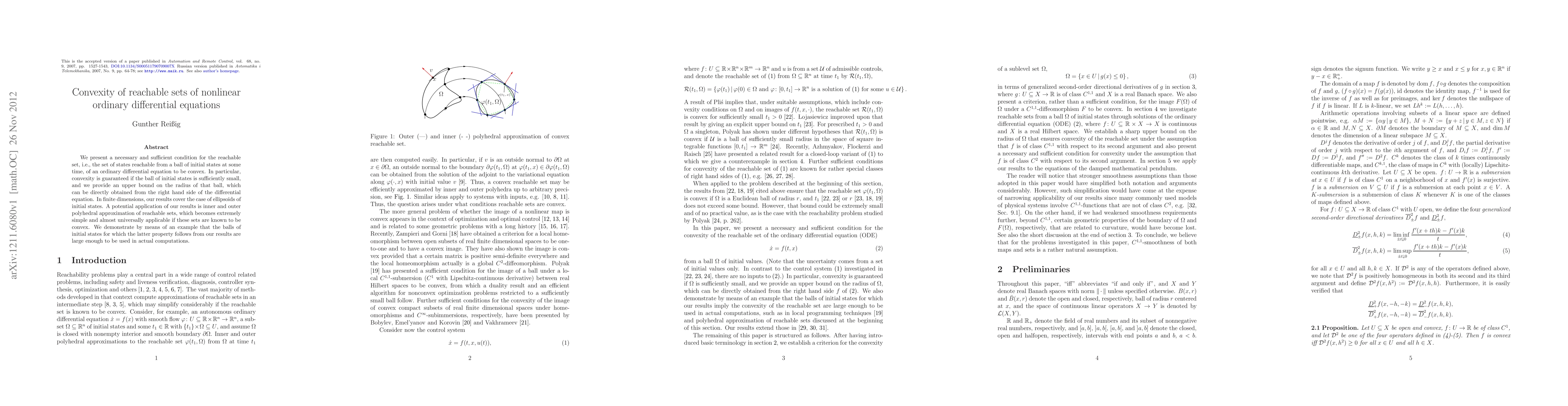 This paper establishes a necessary and sufficient condition for the reachable set of nonlinear ordinary differential equations to be convex when starting from a small enough initial state ball. It provides an upper bound on the ball's radius based on the differential equation's right-hand side, facilitating simple polyhedral approximations.