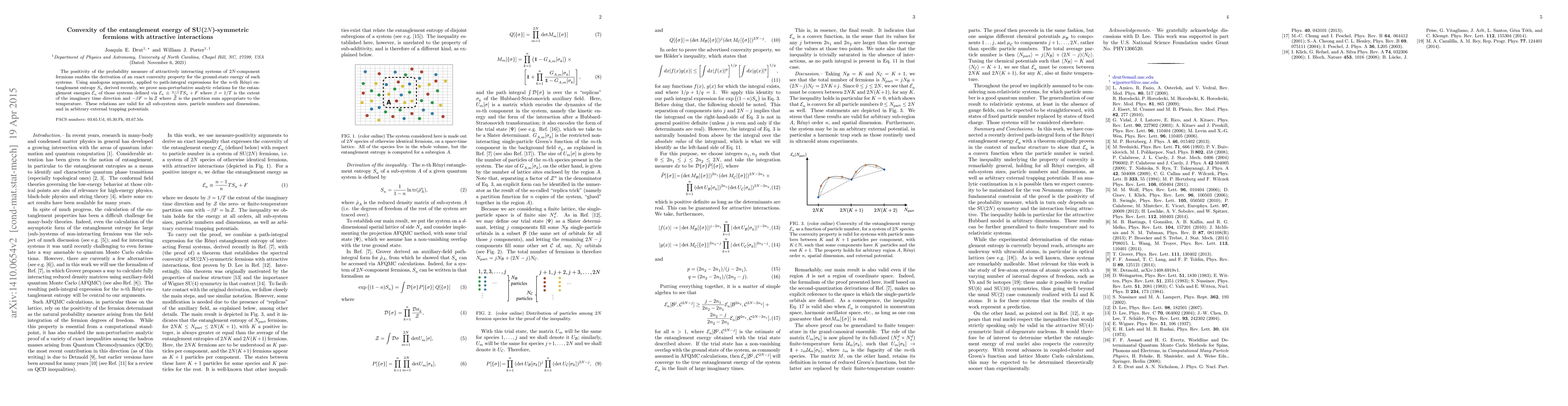 The positivity of the probability measure of attractively interacting systems of $2N$-component fermions enables the derivation of an exact convexity property for the ground-state energy of such systems. Using analogous arguments, applied to path-integral expressions for the $n$-th R\'enyi entanglement entropy $S^{}_n$ derived recently, we prove non-perturbative analytic relations for the entanglement energies $\mathcal E^{}_n$ of those systems defined via $\mathcal{E}^{}_n \equiv \frac{n-1}{n}T S^{}_n + F$ where $\beta = 1/T$ is the extent of the imaginary time direction and $-\beta F = \ln \mathcal Z$ where $\mathcal Z$ is the partition sum appropriate to the temperature. These relations are valid for all sub-system sizes, particle numbers and dimensions, and in arbitrary external trapping potentials.