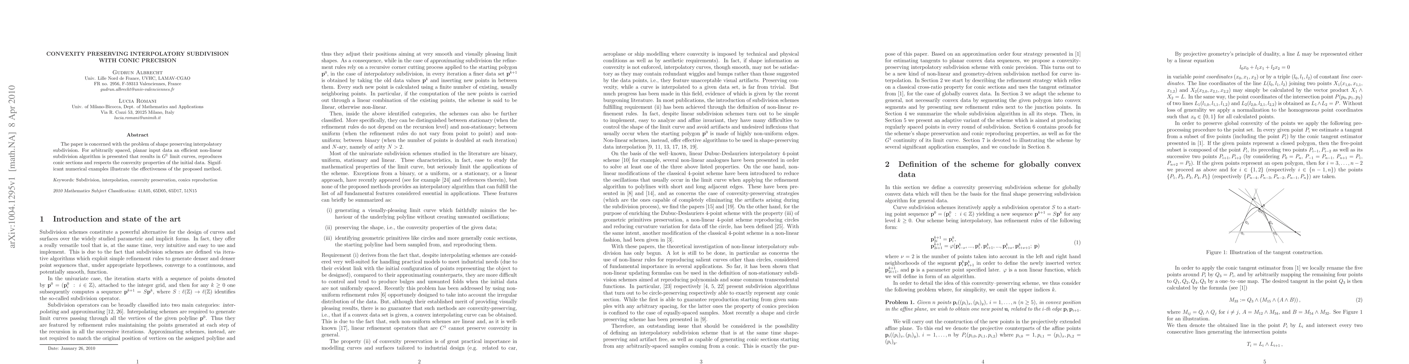 The paper introduces an efficient non-linear subdivision algorithm for shape-preserving interpolation of arbitrarily spaced planar data, ensuring $G^1$ limit curves, conic section reproduction, and preservation of initial convexity properties. Numerical examples demonstrate the method's effectiveness.