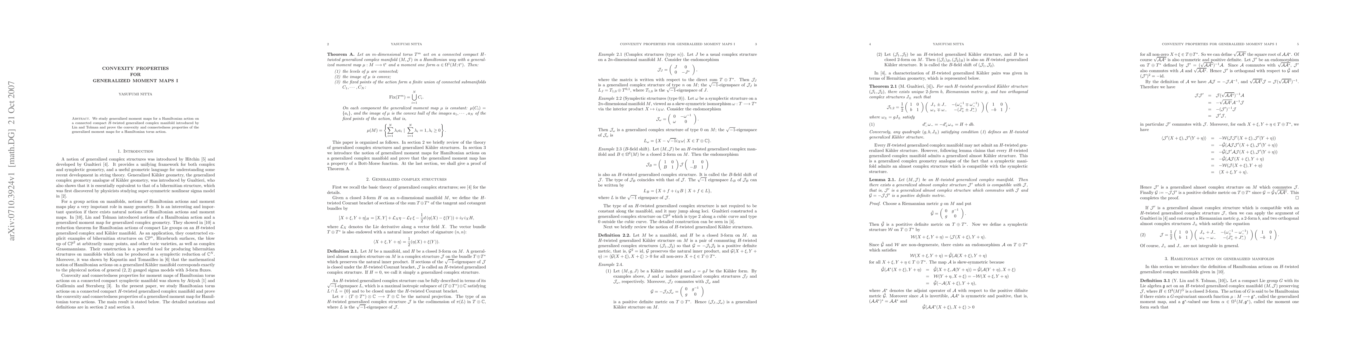 This paper investigates generalized moment maps for Hamiltonian actions on compact $H$-twisted generalized complex manifolds, proving their convexity and connectedness under Hamiltonian torus actions. The results extend the understanding of these maps in the context of generalized complex geometry.