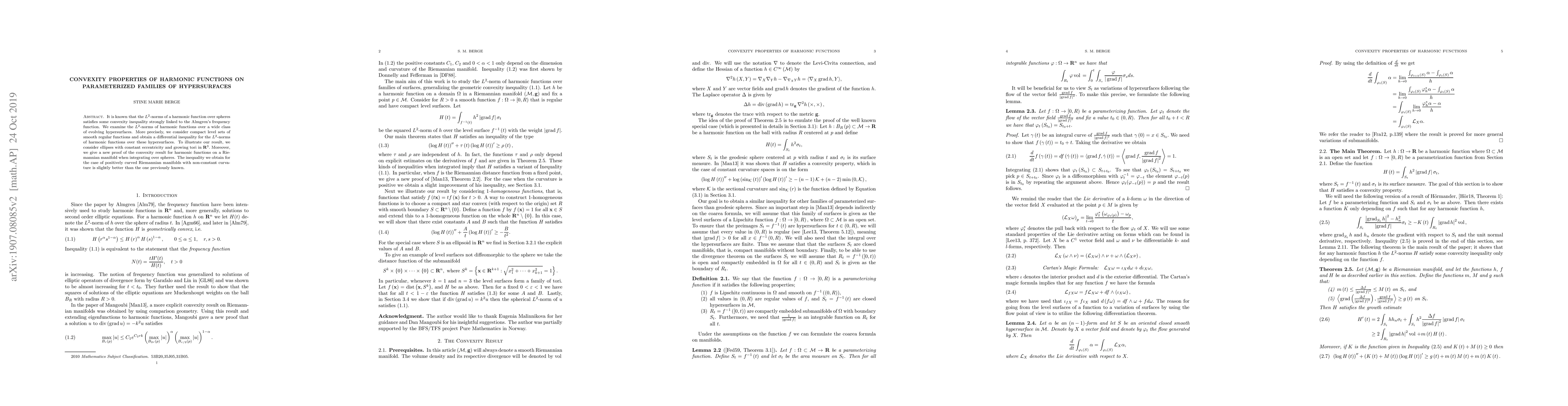This paper investigates the convexity properties of harmonic functions over parameterized families of evolving hypersurfaces, deriving a differential inequality for their $L^{2}$-norms. It provides a new proof for the convexity result on Riemannian manifolds, improving the inequality for positively curved manifolds.