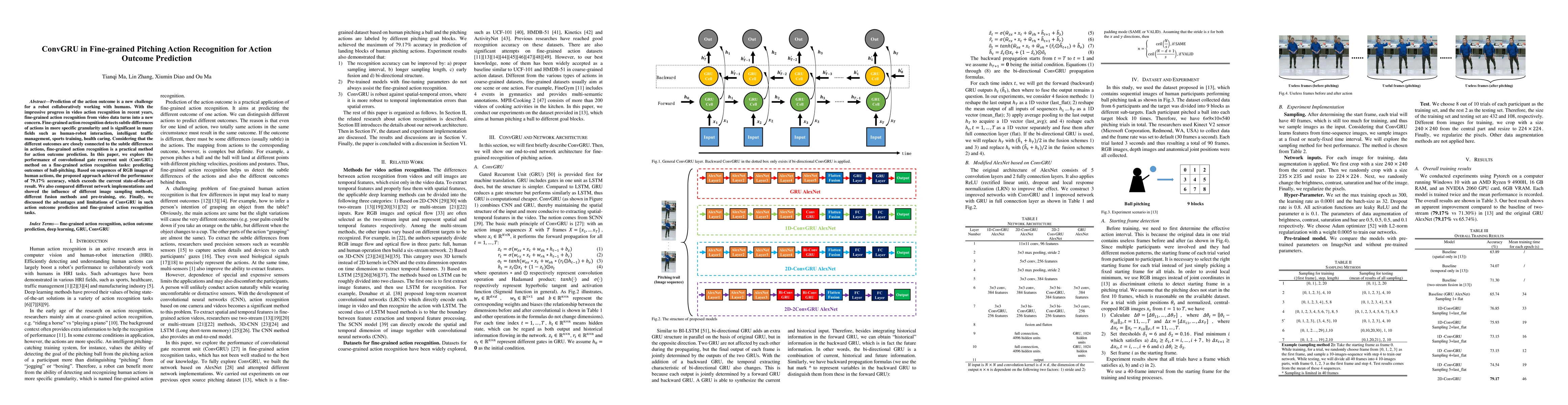 Prediction of the action outcome is a new challenge for a robot collaboratively working with humans. With the impressive progress in video action recognition in recent years, fine-grained action recognition from video data turns into a new concern. Fine-grained action recognition detects subtle differences of actions in more specific granularity and is significant in many fields such as human-robot interaction, intelligent traffic management, sports training, health caring. Considering that the different outcomes are closely connected to the subtle differences in actions, fine-grained action recognition is a practical method for action outcome prediction. In this paper, we explore the performance of convolutional gate recurrent unit (ConvGRU) method on a fine-grained action recognition tasks: predicting outcomes of ball-pitching. Based on sequences of RGB images of human actions, the proposed approach achieved the performance of 79.17% accuracy, which exceeds the current state-of-the-art result. We also compared different network implementations and showed the influence of different image sampling methods, different fusion methods and pre-training, etc. Finally, we discussed the advantages and limitations of ConvGRU in such action outcome prediction and fine-grained action recognition tasks.