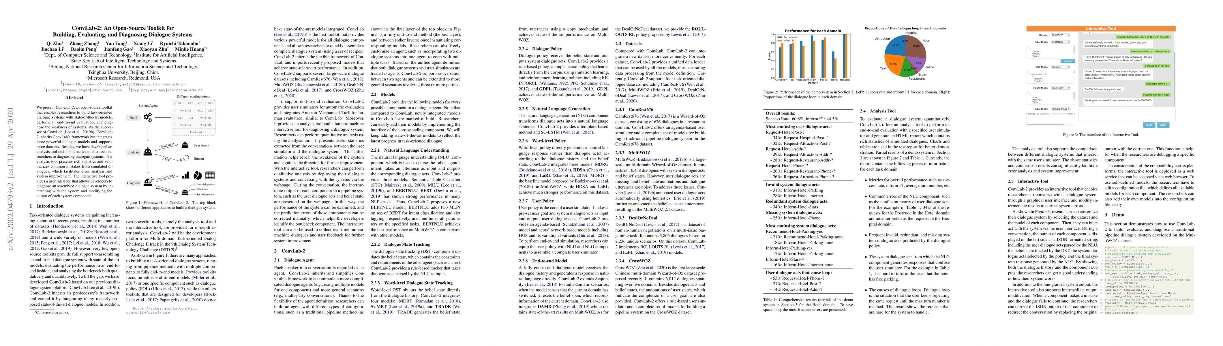 ConvLab-2 is an open-source toolkit for constructing, evaluating, and diagnosing task-oriented dialogue systems, featuring advanced models and expanded dataset support. It includes tools for detailed analysis and interactive diagnostics to enhance system improvement.