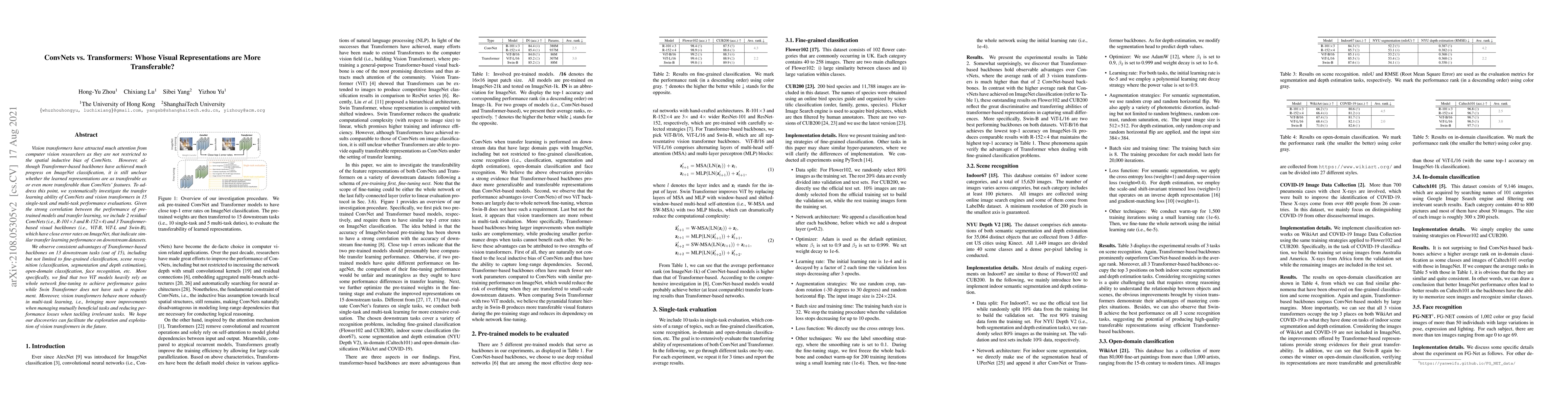 This research compares the transfer learning capabilities of ConvNets and vision transformers, finding that Transformer-based backbones generally outperform ConvNets across 13 out of 15 downstream tasks. Vision transformers show more robustness in multi-task learning and require whole network fine-tuning for optimal performance.