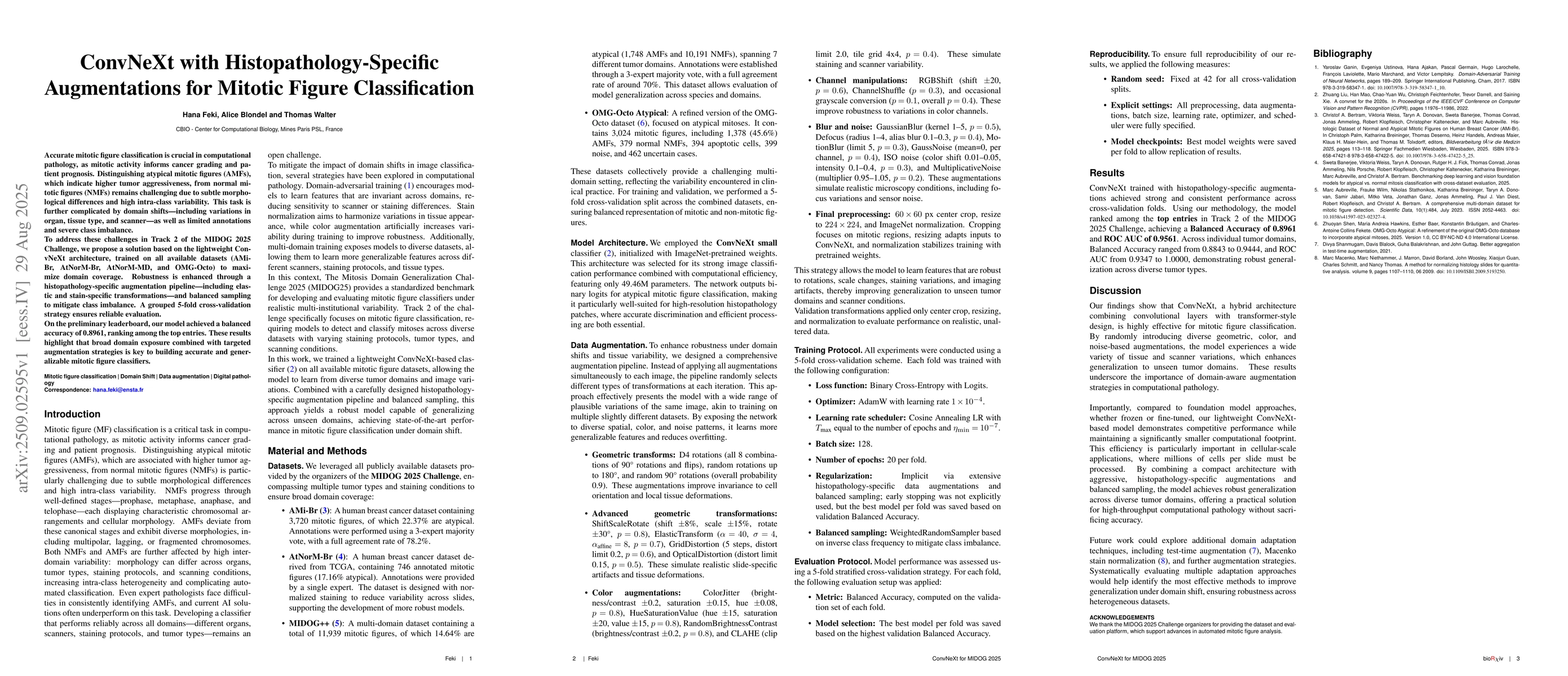 Accurate mitotic figure classification is crucial in computational pathology, as mitotic activity informs cancer grading and patient prognosis. Distinguishing atypical mitotic figures (AMFs), which indicate higher tumor aggressiveness, from normal mitotic figures (NMFs) remains challenging due to subtle morphological differences and high intra-class variability. This task is further complicated by domain shifts, including variations in organ, tissue type, and scanner, as well as limited annotations and severe class imbalance. To address these challenges in Track 2 of the MIDOG 2025 Challenge, we propose a solution based on the lightweight ConvNeXt architecture, trained on all available datasets (AMi-Br, AtNorM-Br, AtNorM-MD, and OMG-Octo) to maximize domain coverage. Robustness is enhanced through a histopathology-specific augmentation pipeline, including elastic and stain-specific transformations, and balanced sampling to mitigate class imbalance. A grouped 5-fold cross-validation strategy ensures reliable evaluation. On the preliminary leaderboard, our model achieved a balanced accuracy of 0.8961, ranking among the top entries. These results highlight that broad domain exposure combined with targeted augmentation strategies is key to building accurate and generalizable mitotic figure classifiers.