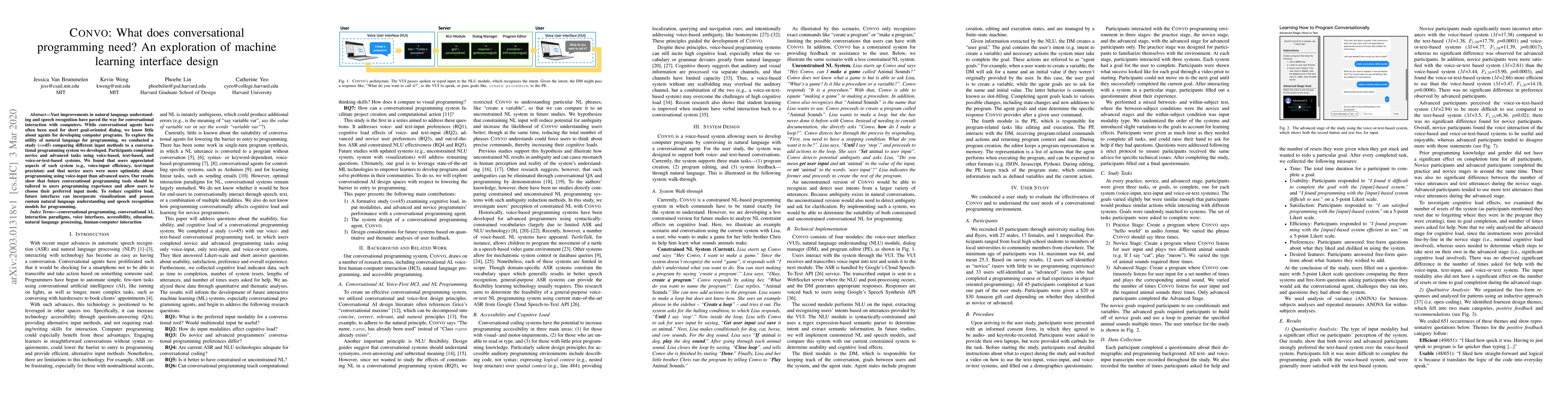 This study explores conversational programming interfaces, comparing voice-based, text-based, and hybrid systems. Results indicate that novice users prefer voice-input for its efficiency, suggesting future tools should adapt to user experience levels and offer customizable input modes.