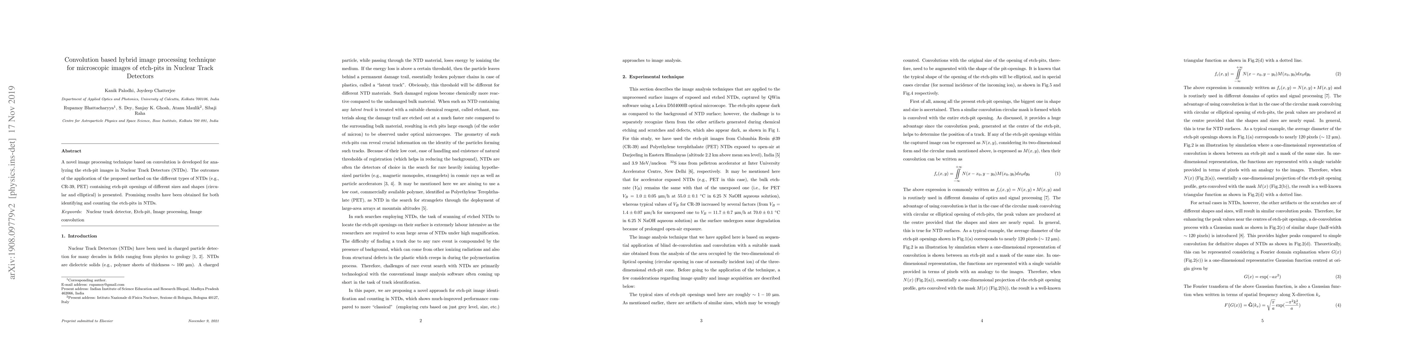 A novel image processing technique based on convolution is developed for analyzing the etch-pit images in Nuclear Track Detectors (NTDs). The outcomes of the application of the proposed method on the different types of NTDs (e.g., CR-39, PET) containing etch-pit openings of different sizes and shapes (circular and elliptical) is presented. Promising results have been obtained for both identifying and counting the etch-pits in NTDs.