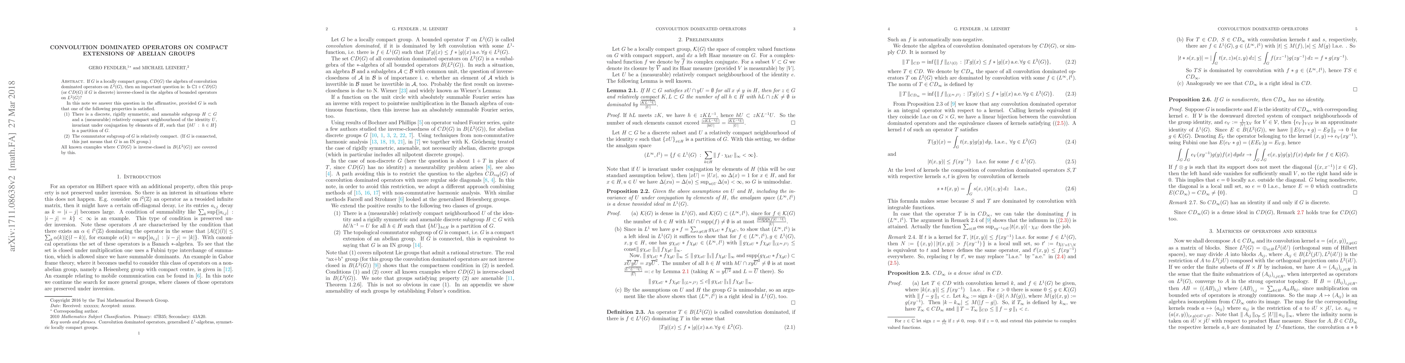 If $G$ is a locally compact group, $CD(G)$ the algebra of convolution dominated operators on $L^2(G)$ then an important question is: Is $\mathbb{C}1+CD(G)$ (respectively $CD(G)$ if $G$ is discrete) inverse-closed in the bounded operators on $L^2(G)$? In this note we answer this question in the affirmative provided $G$ is such that one of the following properties is fulfilled (1) There is a discrete, rigidly symmetric, and amenable subgroup $H\subset G$ and a (measurable) relatively compact neighbourhood of the identity $U$ invariant under conjugation by elements of $H$ such that $\{hU\;:\;h\in H\}$ is a partition of $G$. (2) The commutator subgroup of $G$ is relatively compact. (If $G$ is connected this just means that $G$ is an IN group.) All known examples where $CD(G)$ is inverse-closed in $B(L^2(G))$ are covered by this.