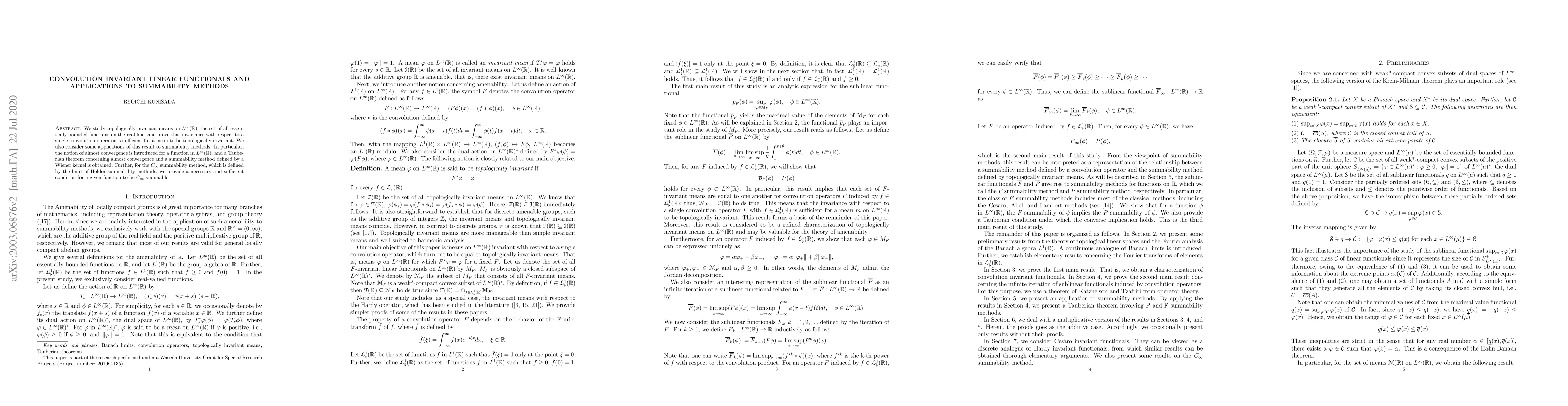 The paper proves that invariance under a single convolution operator ensures topological invariance, linking convolution operators to summability methods in a novel way.