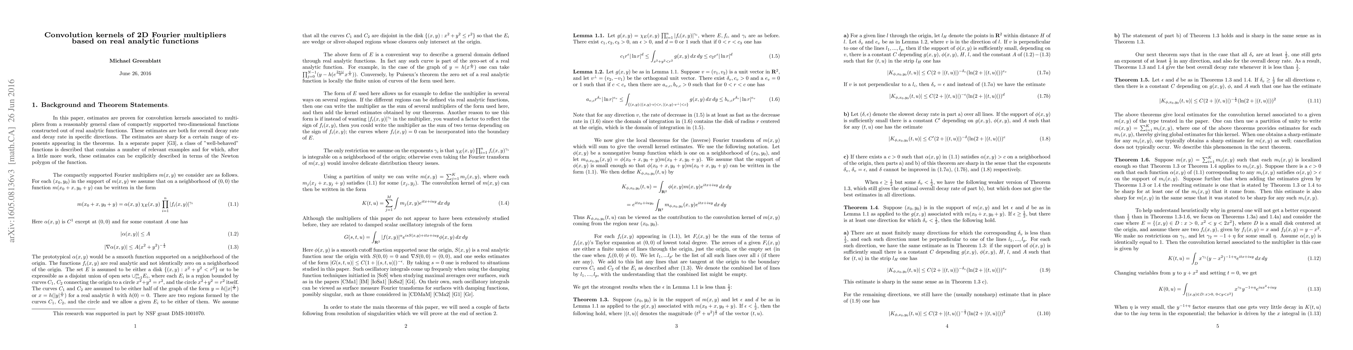 Researchers estimate convolution kernels for 2D Fourier multipliers based on real-analytic functions, providing bounds on decay rates in different directions.