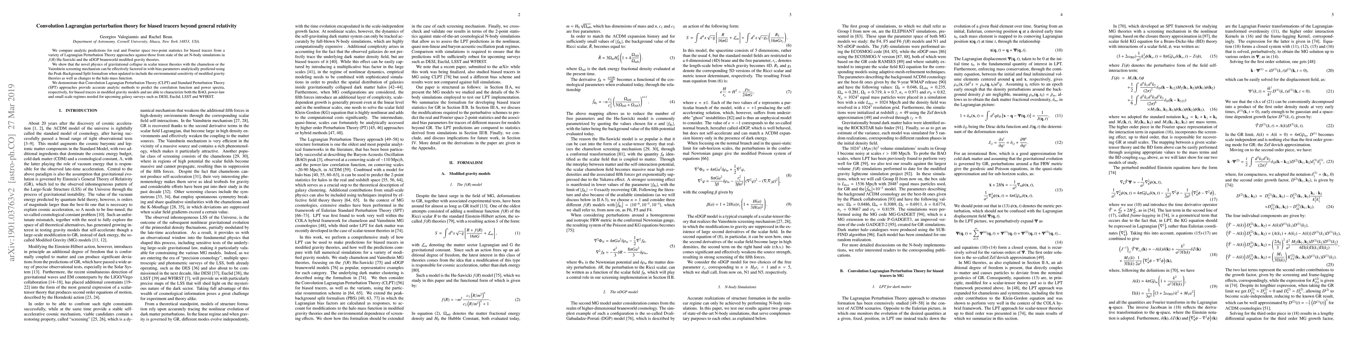 This paper compares analytic predictions from Convolution Lagrangian Perturbation Theory (CLPT) and Standard Perturbation Theory (SPT) against N-body simulations for biased tracers in modified gravity models, showing that these methods accurately predict correlation functions and power spectra for upcoming galaxy surveys. It also incorporates the effects of chameleon and Vainshtein screening mechanisms in scalar-tensor theories.