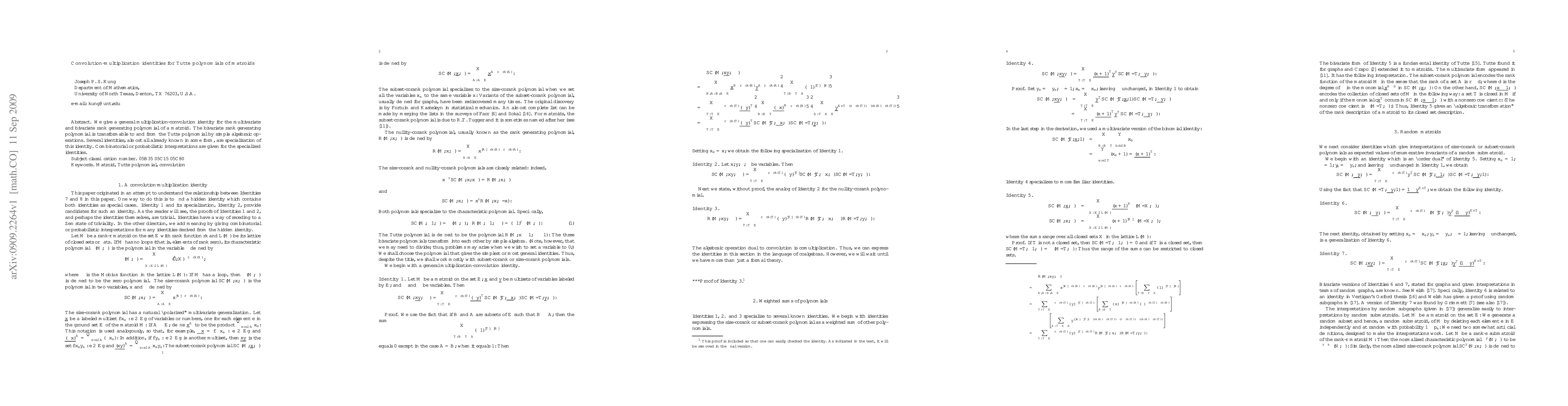 Researchers developed a general multiplication-convolution identity for Tutte polynomials of matroids, which are transformable to the bivariate rank generating polynomial through simple algebraic operations.