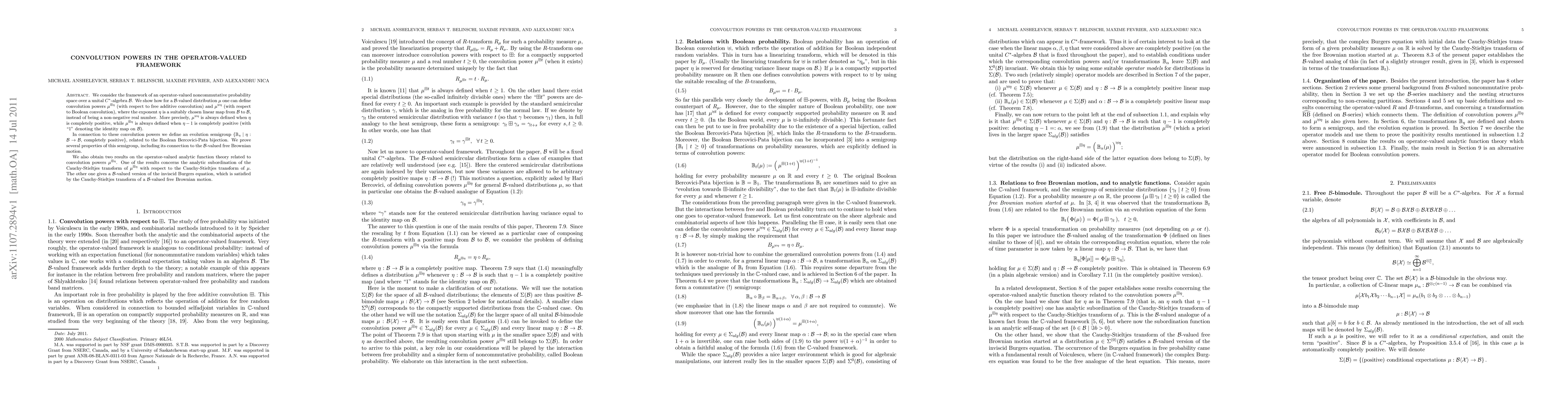 This paper defines convolution powers in an operator-valued noncommutative probability space over a unital C*-algebra, exploring both free and Boolean convolutions with a linear map. It also introduces an evolution semigroup connected to the Boolean Bercovici-Pata bijection and proves properties related to B-valued free Brownian motion.
