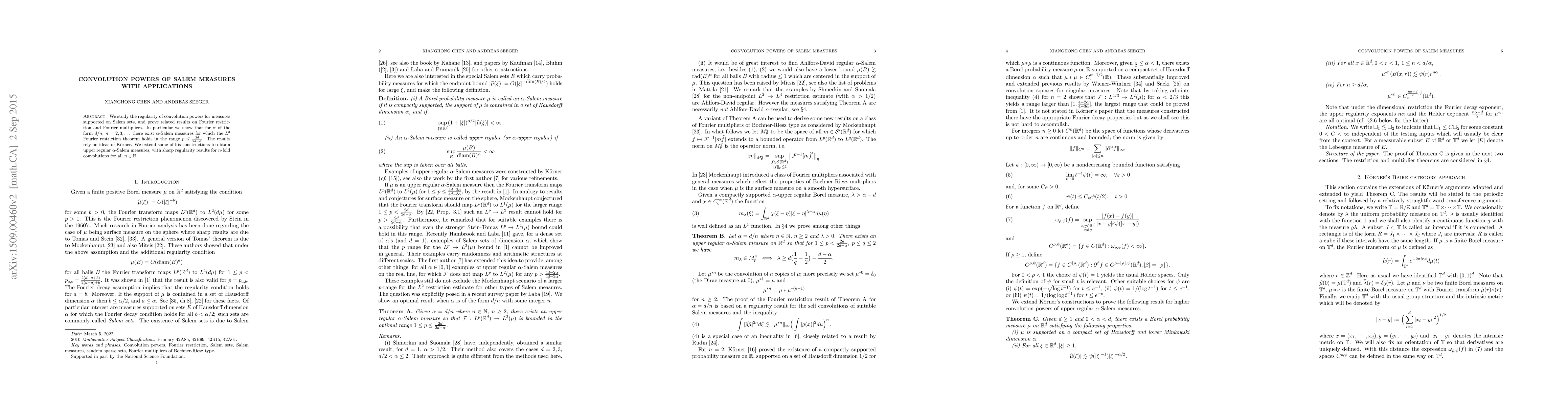 Researchers study the properties of convolution powers for measures supported on Salem sets, proving new results on Fourier restriction and Fourier multipliers.