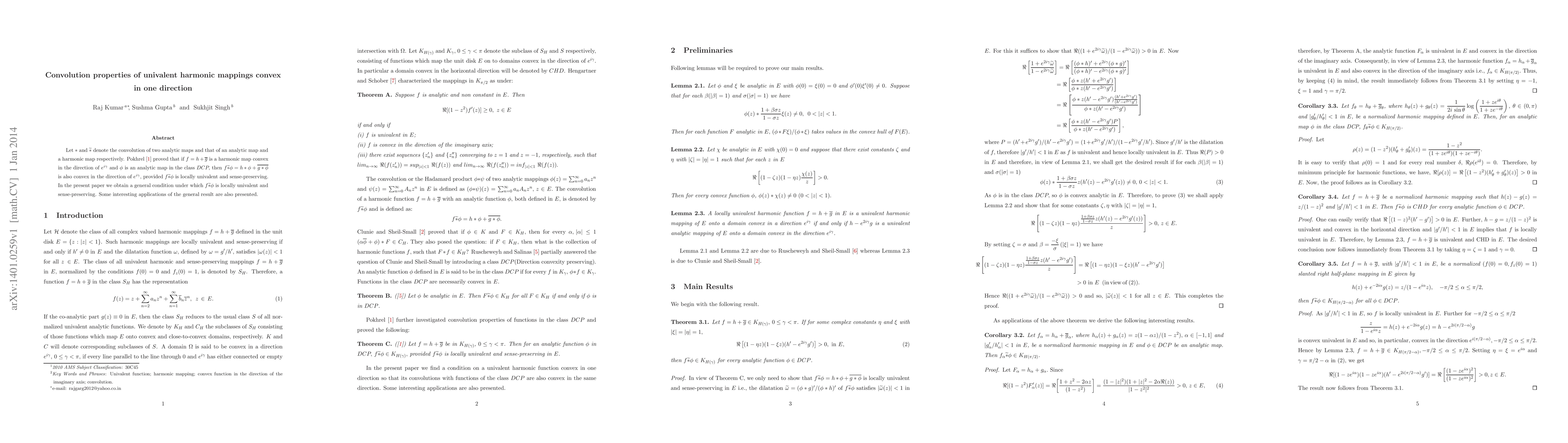 Let $\ast$ and $\widetilde {\ast}$ denote the convolution of two analytic maps and that of an analytic map and a harmonic map respectively. Pokhrel [1] proved that if $f = h+\overline{g}$ is a harmonic map convex in the direction of $e^{i\gamma}$ and $\phi$ is an analytic map in the class DCP, then $f\widetilde{\ast} \phi= h\widetilde{\ast}\phi + \overline{g\widetilde{\ast}\phi}$ is also convex in the direction of $e^{i\gamma}$, provided $f\widetilde{\ast}\phi$ is locally univalent and sense-preserving. In the present paper we obtain a general condition under which $f\widetilde{\ast} \phi$ is locally univalent and sense-preserving. Some interesting applications of the general result are also presented.
