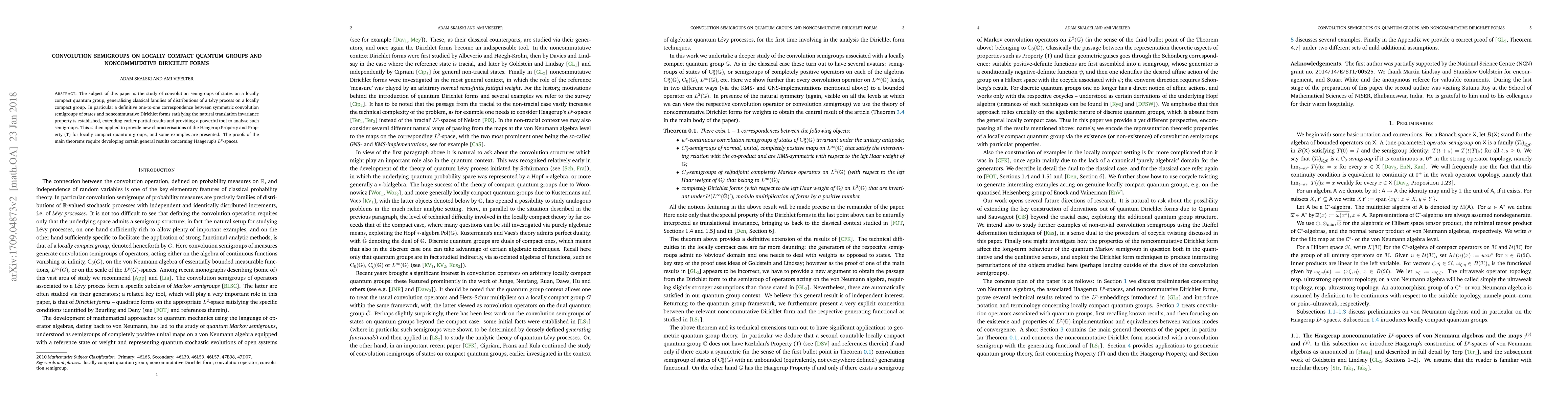 The subject of this paper is the study of convolution semigroups of states on a locally compact quantum group, generalising classical families of distributions of a L\'{e}vy process on a locally compact group. In particular a definitive one-to-one correspondence between symmetric convolution semigroups of states and noncommutative Dirichlet forms satisfying the natural translation invariance property is established, extending earlier partial results and providing a powerful tool to analyse such semigroups. This is then applied to provide new characterisations of the Haagerup Property and Property (T) for locally compact quantum groups, and some examples are presented. The proofs of the main theorems require developing certain general results concerning Haagerup's $L^{p}$-spaces.