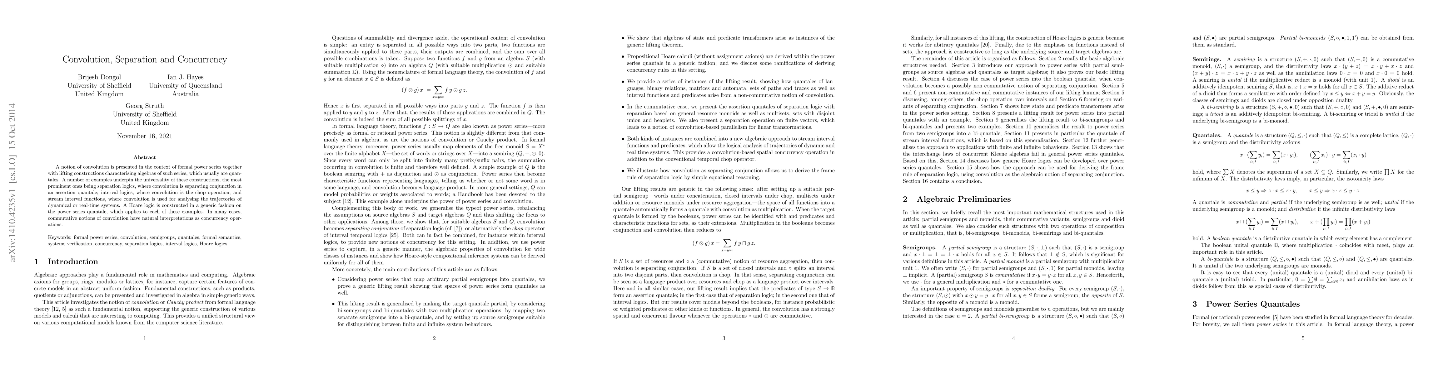 A notion of convolution is presented in the context of formal power series together with lifting constructions characterising algebras of such series, which usually are quantales. A number of examples underpin the universality of these constructions, the most prominent ones being separation logics, where convolution is separating conjunction in an assertion quantale; interval logics, where convolution is the chop operation; and stream interval functions, where convolution is used for analysing the trajectories of dynamical or real-time systems. A Hoare logic is constructed in a generic fashion on the power series quantale, which applies to each of these examples. In many cases, commutative notions of convolution have natural interpretations as concurrency operations.