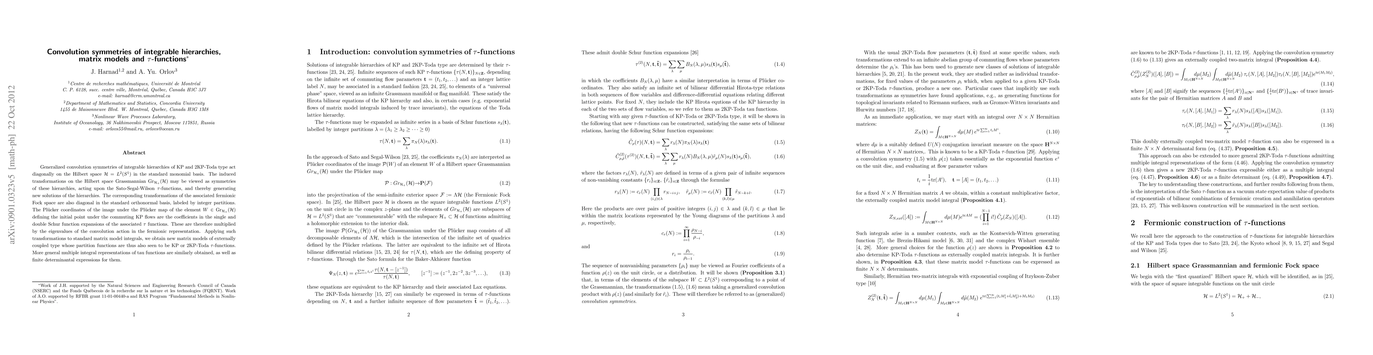 Generalized convolution symmetries of integrable hierarchies of KP and 2KP-Toda type multiply the Fourier coefficients of the elements of the Hilbert space $\HH= L^2(S^1)$ by a specified sequence of constants. This induces a corresponding transformation on the Hilbert space Grassmannian $\Gr_{\HH_+}(\HH)$ and hence on the Sato-Segal-Wilson \tau-functions determining solutions to the KP and 2-Toda hierarchies. The corresponding action on the associated fermionic Fock space is also diagonal in the standard orthonormal base determined by occupation sites and labeled by partitions. The Pl\"ucker coordinates of the element element $W \in \Gr_{\HH_+}(\HH)$ defining the initial point of these commuting flows are the coefficients in the single and double Schur function of the associated \tau function, and are therefore multiplied by the corresponding diagonal factors under this action. Applying such transformations to matrix integrals, we obtain new matrix models of externally coupled type that are hence also KP or 2KP-Toda \tau-functions. More general multiple integral representations of \tau functions are similarly obtained, as well as finite determinantal expressions for them.