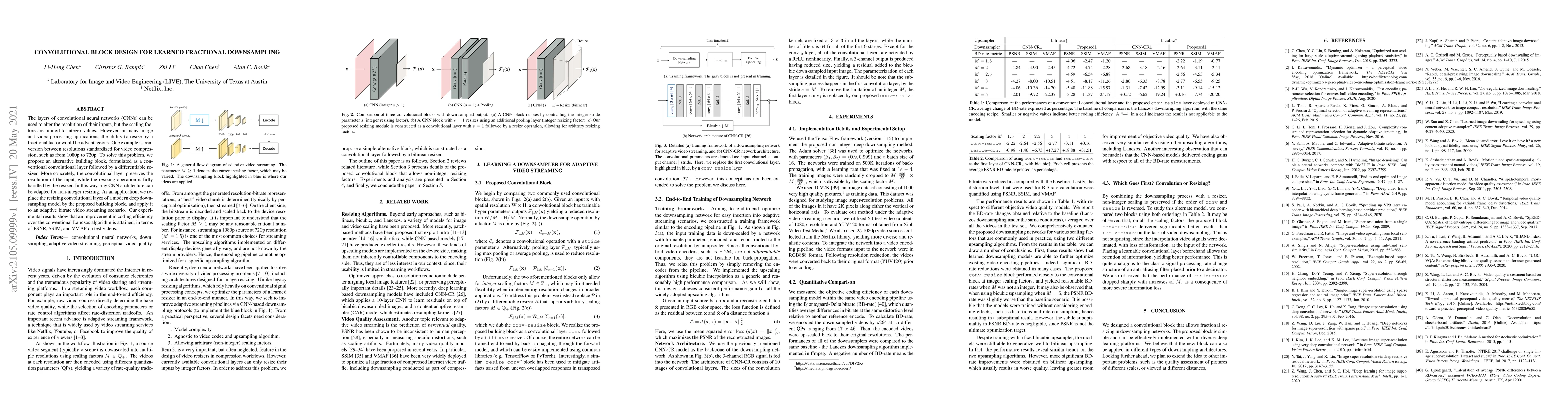 This paper proposes a convolutional block design that incorporates a differentiable resizer to enable learned fractional downsampling in CNNs, allowing for non-integer resolution scaling. Experimental results demonstrate improved coding efficiency over traditional methods in adaptive bitrate video streaming.