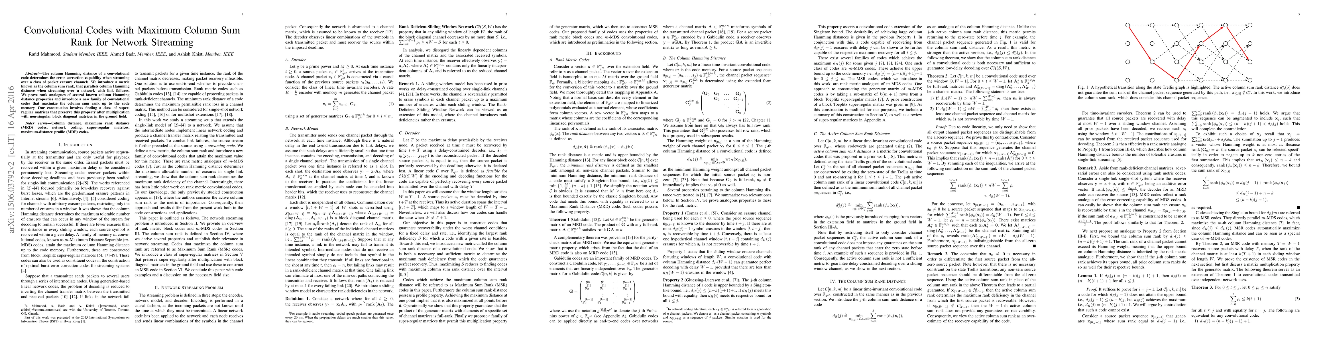 This paper introduces a new metric called column sum rank to enhance error correction in network streaming over packet erasure channels with link failures. It presents a family of convolutional codes that maximize this rank, utilizing super-regular matrices and non-singular block diagonal matrices to maintain optimal properties.