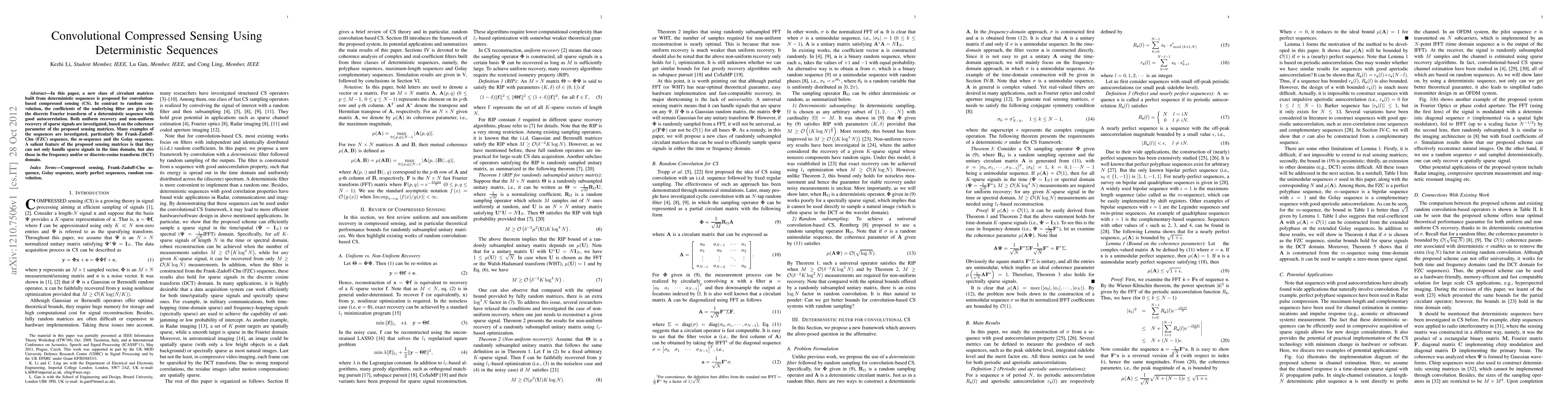This paper introduces a new class of circulant matrices derived from deterministic sequences for convolution-based compressed sensing, contrasting with random convolution. It investigates both uniform and non-uniform recovery of sparse signals using coherence parameters, showcasing the effectiveness of sequences like Frank-Zadoff-Chu, m-sequence, and Golay.