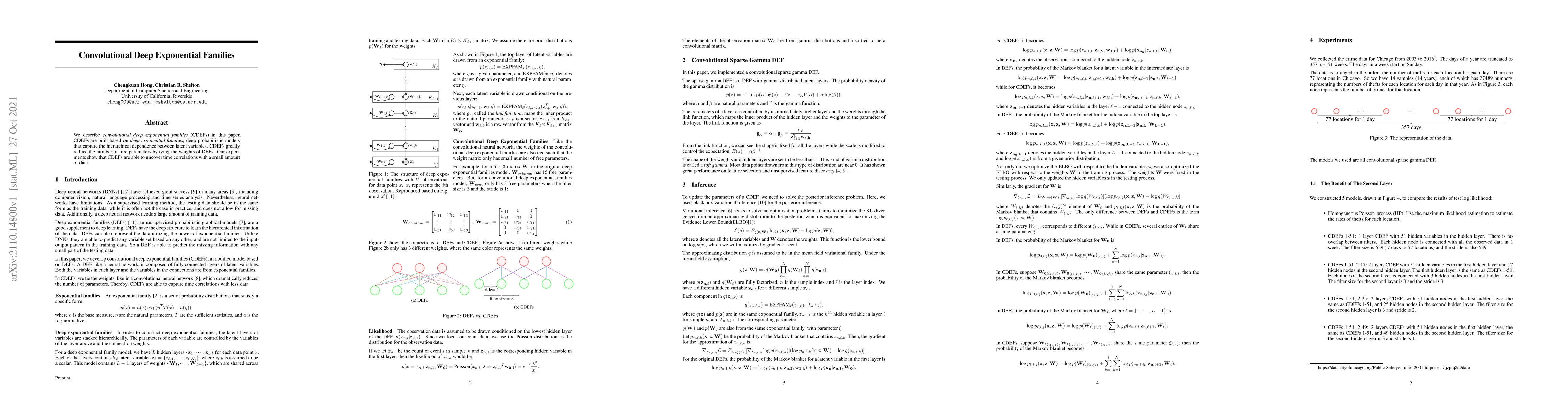 This paper introduces convolutional deep exponential families (CDEFs), which reduce parameters by tying weights in deep exponential families. Experiments demonstrate CDEFs' effectiveness in uncovering time correlations with minimal data.