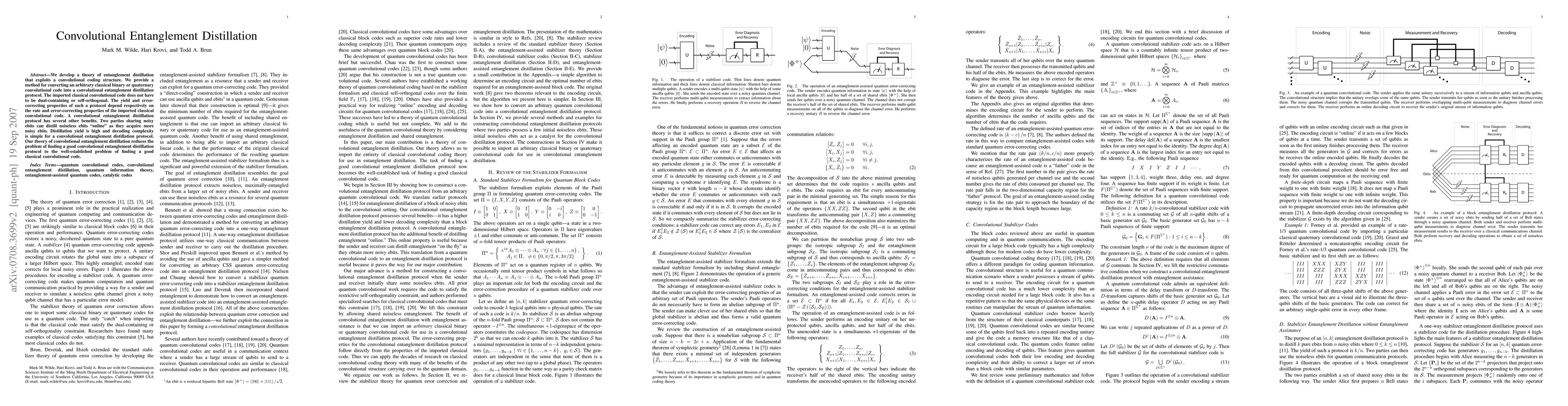 We develop a theory of entanglement distillation that exploits a convolutional coding structure. We provide a method for converting an arbitrary classical binary or quaternary convolutional code into a convolutional entanglement distillation protocol. The imported classical convolutional code does not have to be dual-containing or self-orthogonal. The yield and error-correcting properties of such a protocol depend respectively on the rate and error-correcting properties of the imported classical convolutional code. A convolutional entanglement distillation protocol has several other benefits. Two parties sharing noisy ebits can distill noiseless ebits ``online'' as they acquire more noisy ebits. Distillation yield is high and decoding complexity is simple for a convolutional entanglement distillation protocol. Our theory of convolutional entanglement distillation reduces the problem of finding a good convolutional entanglement distillation protocol to the well-established problem of finding a good classical convolutional code.