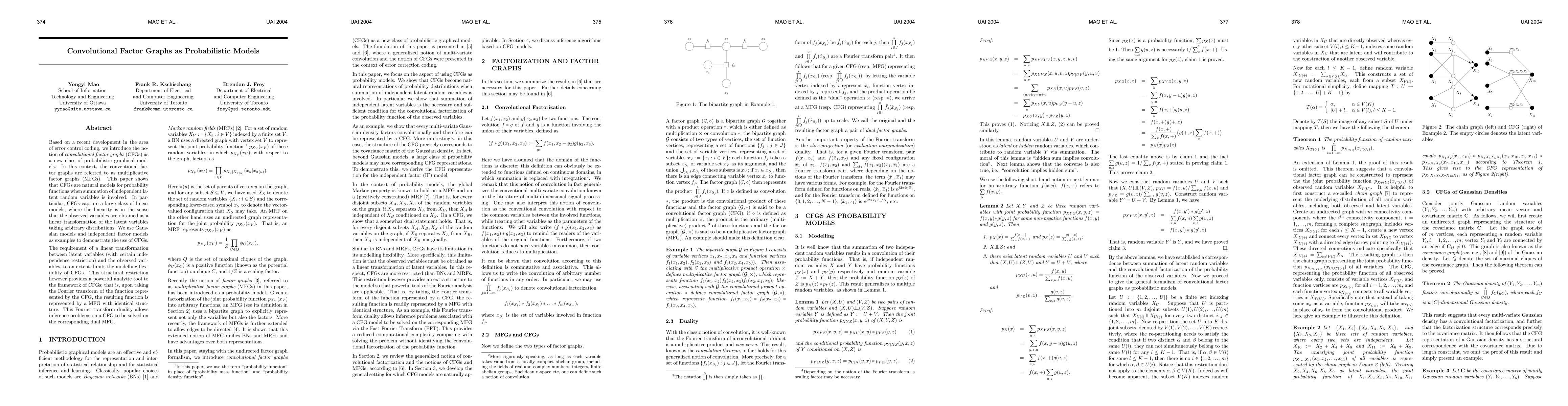 Based on a recent development in the area of error control coding, we introduce the notion of convolutional factor graphs (CFGs) as a new class of probabilistic graphical models. In this context, the conventional factor graphs are referred to as multiplicative factor graphs (MFGs). This paper shows that CFGs are natural models for probability functions when summation of independent latent random variables is involved. In particular, CFGs capture a large class of linear models, where the linearity is in the sense that the observed variables are obtained as a linear ransformation of the latent variables taking arbitrary distributions. We use Gaussian models and independent factor models as examples to emonstrate the use of CFGs. The requirement of a linear transformation between latent variables (with certain independence restriction) and the bserved variables, to an extent, limits the modelling flexibility of CFGs. This structural restriction however provides a powerful analytic tool to the framework of CFGs; that is, upon taking the Fourier transform of the function represented by the CFG, the resulting function is represented by a FG with identical structure. This Fourier transform duality allows inference problems on a CFG to be solved on the corresponding dual MFG.