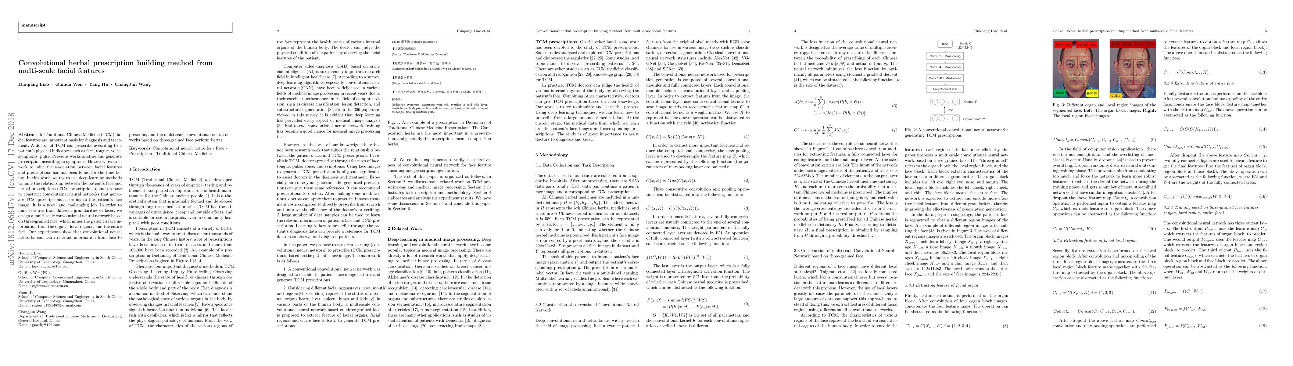 This paper proposes a convolutional neural network to generate Traditional Chinese Medicine (TCM) herbal prescriptions based on multi-scale facial features. The multi-scale approach extracts information from organs, local regions, and the entire face, demonstrating superior performance in linking facial features to prescriptions.