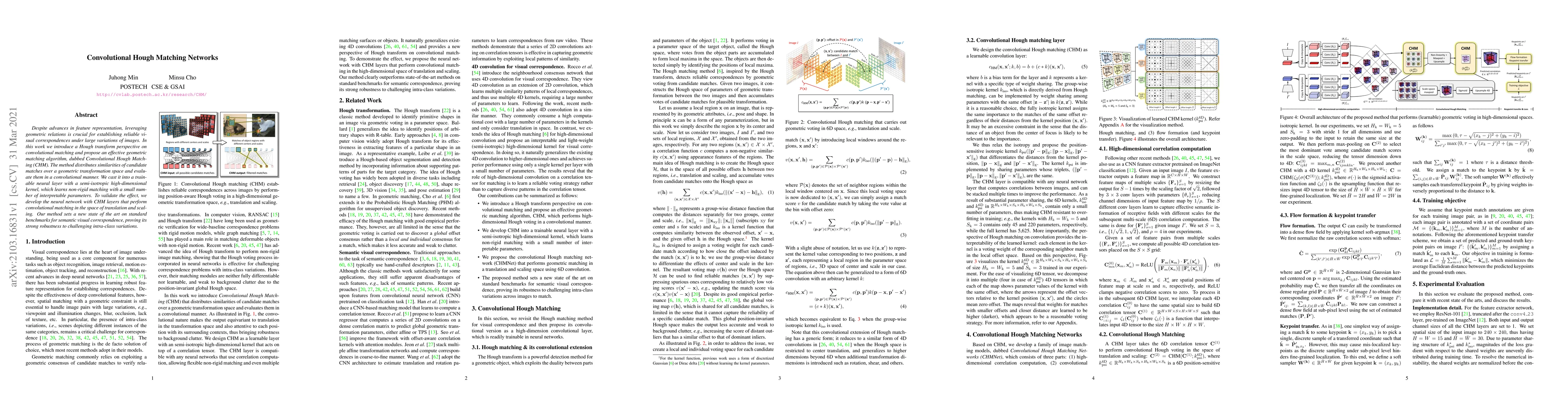 The paper proposes Convolutional Hough Matching (CHM), a geometric matching algorithm that leverages a Hough transform perspective to establish reliable visual correspondences in images with large variations, setting a new state of the art on standard benchmarks.