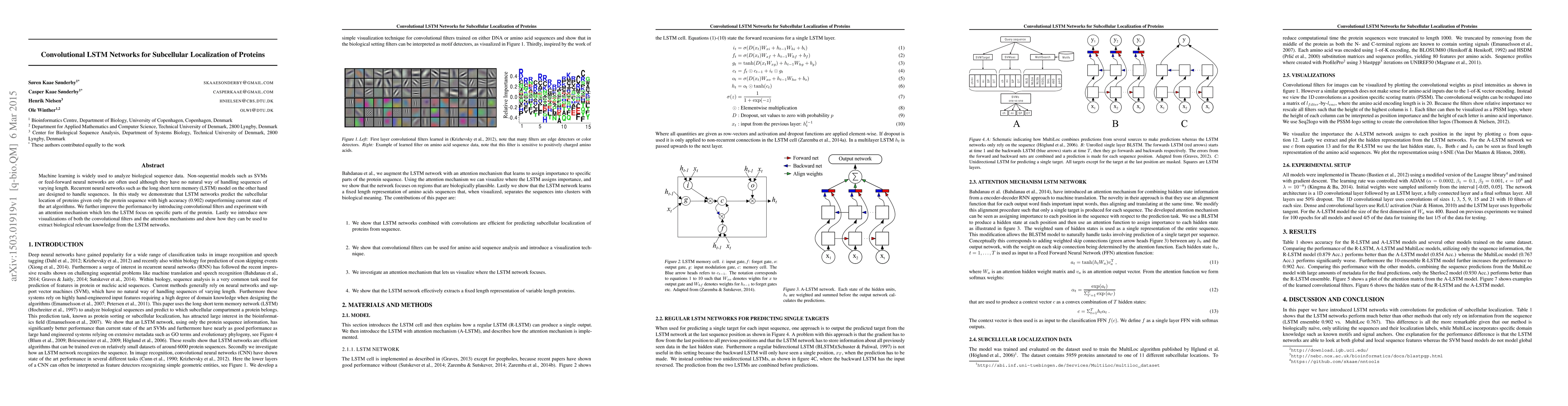 This study uses Convolutional LSTM networks to predict the subcellular localization of proteins from their sequences, achieving an accuracy of 0.902, surpassing existing algorithms. The integration of convolutional filters and an attention mechanism enhances performance and provides new visualizations for extracting biological insights.