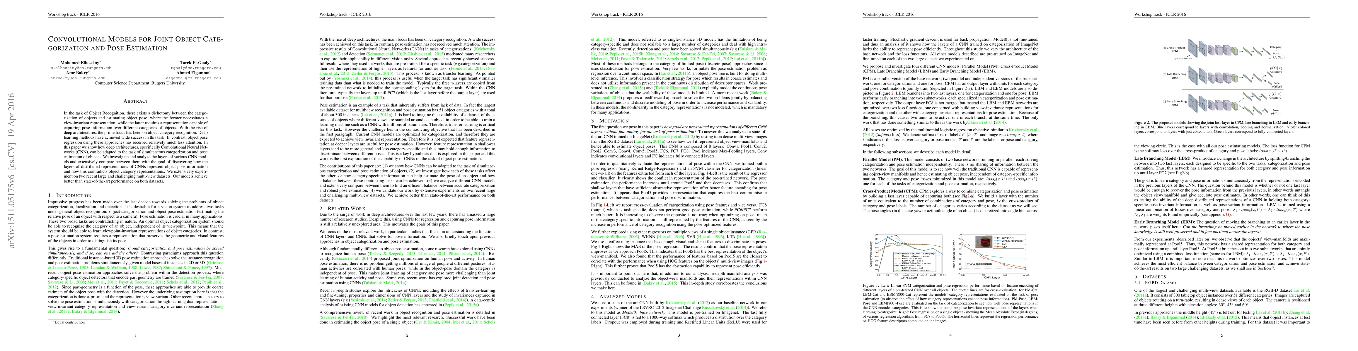This paper explores adapting Convolutional Neural Networks (CNN) for simultaneous object categorization and pose estimation, demonstrating superior performance on challenging datasets compared to existing methods. The study investigates how CNN layers represent object pose information, contrasting it with category representations.