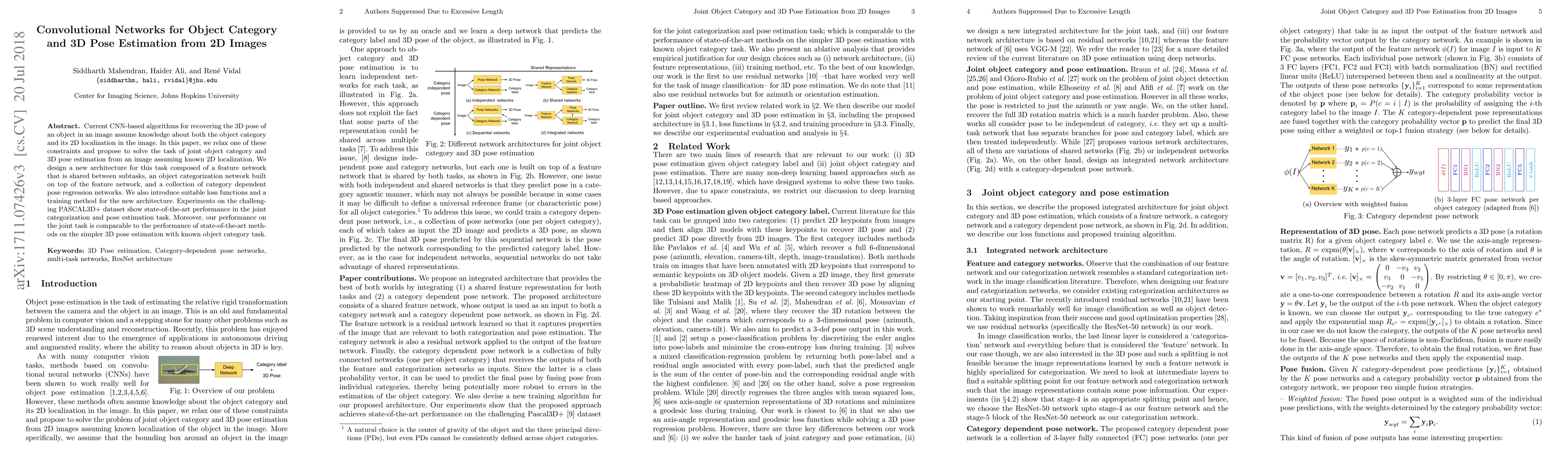 This paper proposes a novel CNN architecture for joint object category and 3D pose estimation from 2D images, relaxing the assumption of known object localization. The architecture includes a shared feature network, an object categorization network, and category-specific pose regression networks, achieving state-of-the-art performance on the PASCAL3D+ dataset.