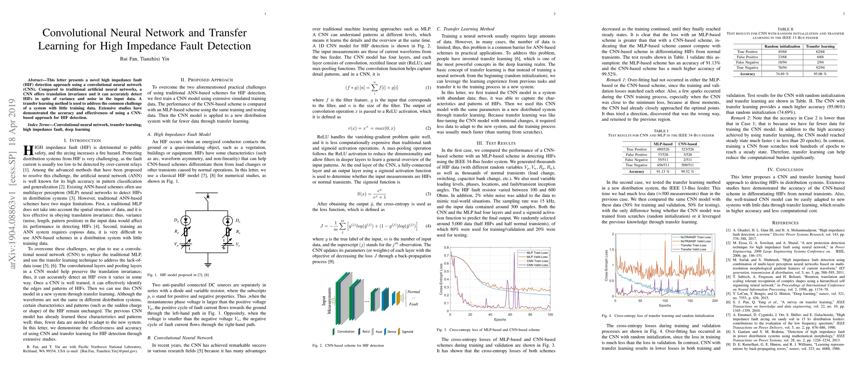 The research proposed a CNN-based approach for high impedance fault detection using transfer learning.