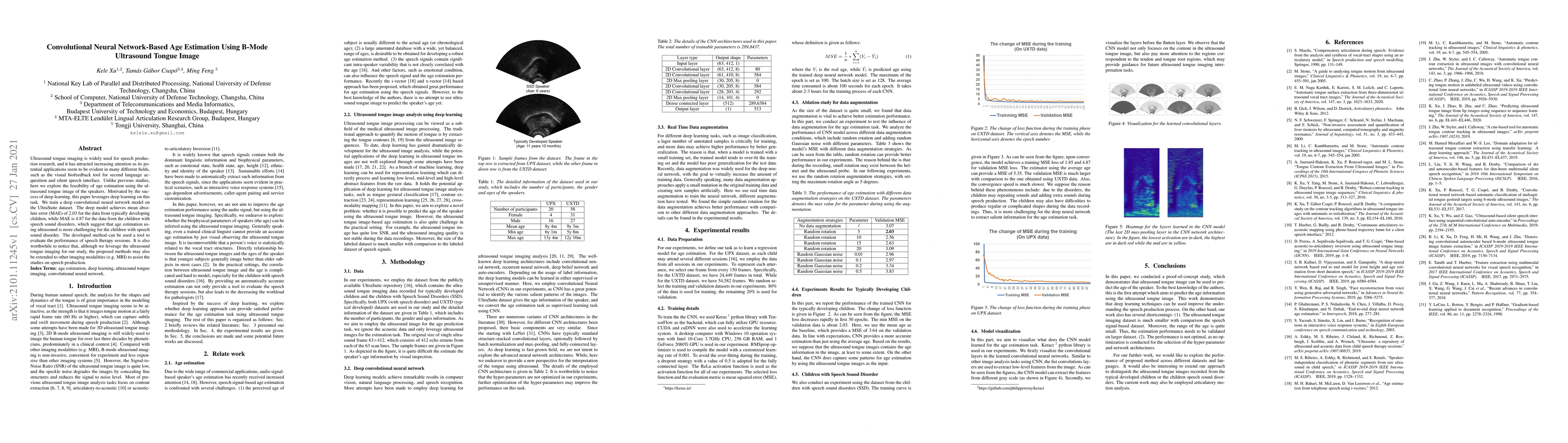This paper explores age estimation using convolutional neural networks trained on B-mode ultrasound tongue images, achieving a mean absolute error of 2.03 for typically developing children and 4.87 for those with speech disorders. The method shows potential for evaluating speech therapy and may extend to other imaging modalities.