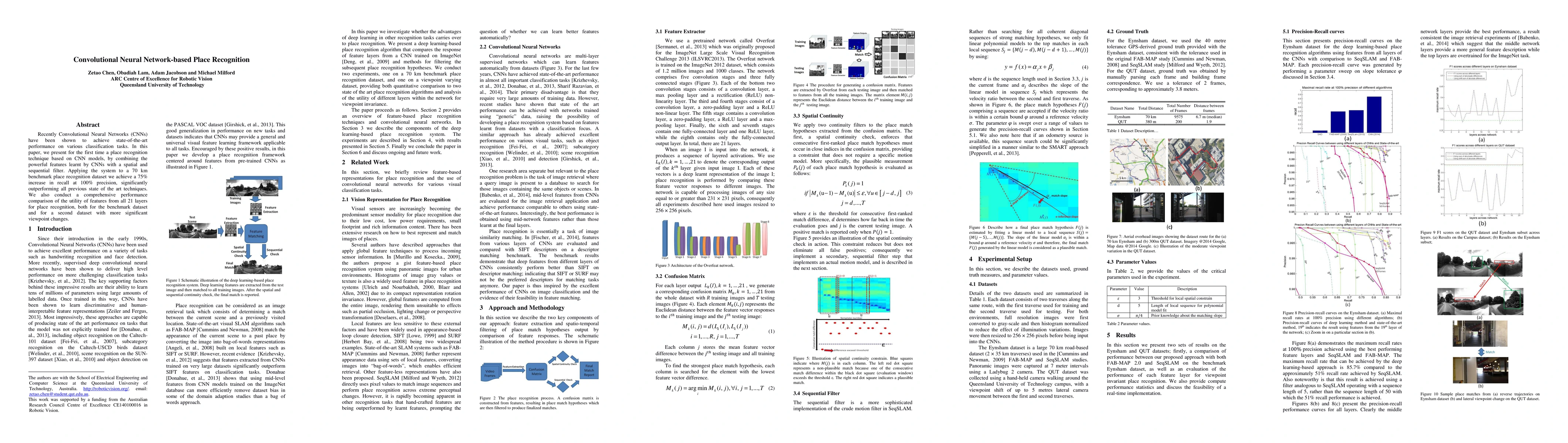 This research introduces a novel place recognition technique leveraging Convolutional Neural Networks (CNNs), achieving a notable 75% increase in recall at 100% precision compared to previous methods. The study also evaluates the effectiveness of features from all 21 layers of CNNs for place recognition across two datasets, showcasing the method's robustness.